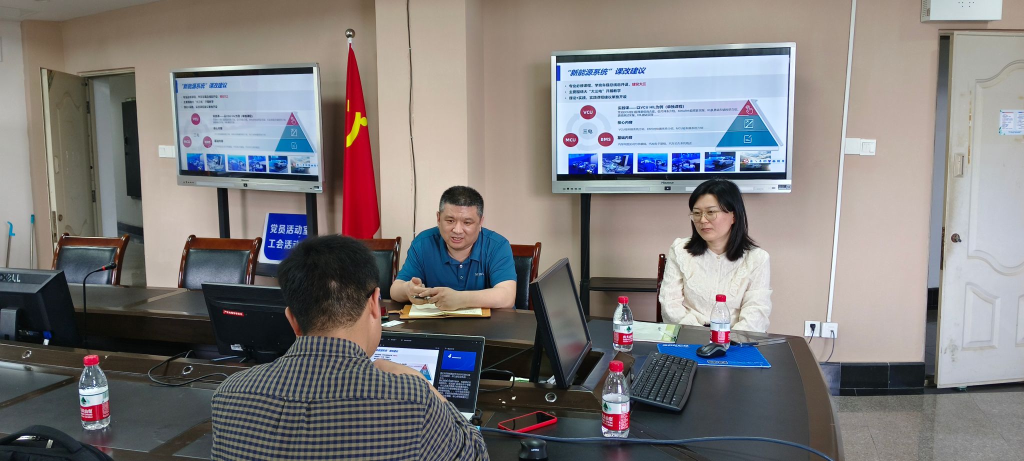 杨智宇主任就公司智能车辆工程专业建设情况及本科、硕士人才培养情况做了简要介绍,鲁涛总监介绍了北京经纬恒润科技有限公司的发展历程、在汽车电子电气架构方向的企企合作、企校合作项目,以及企业在该方向对校企合作的规划。
