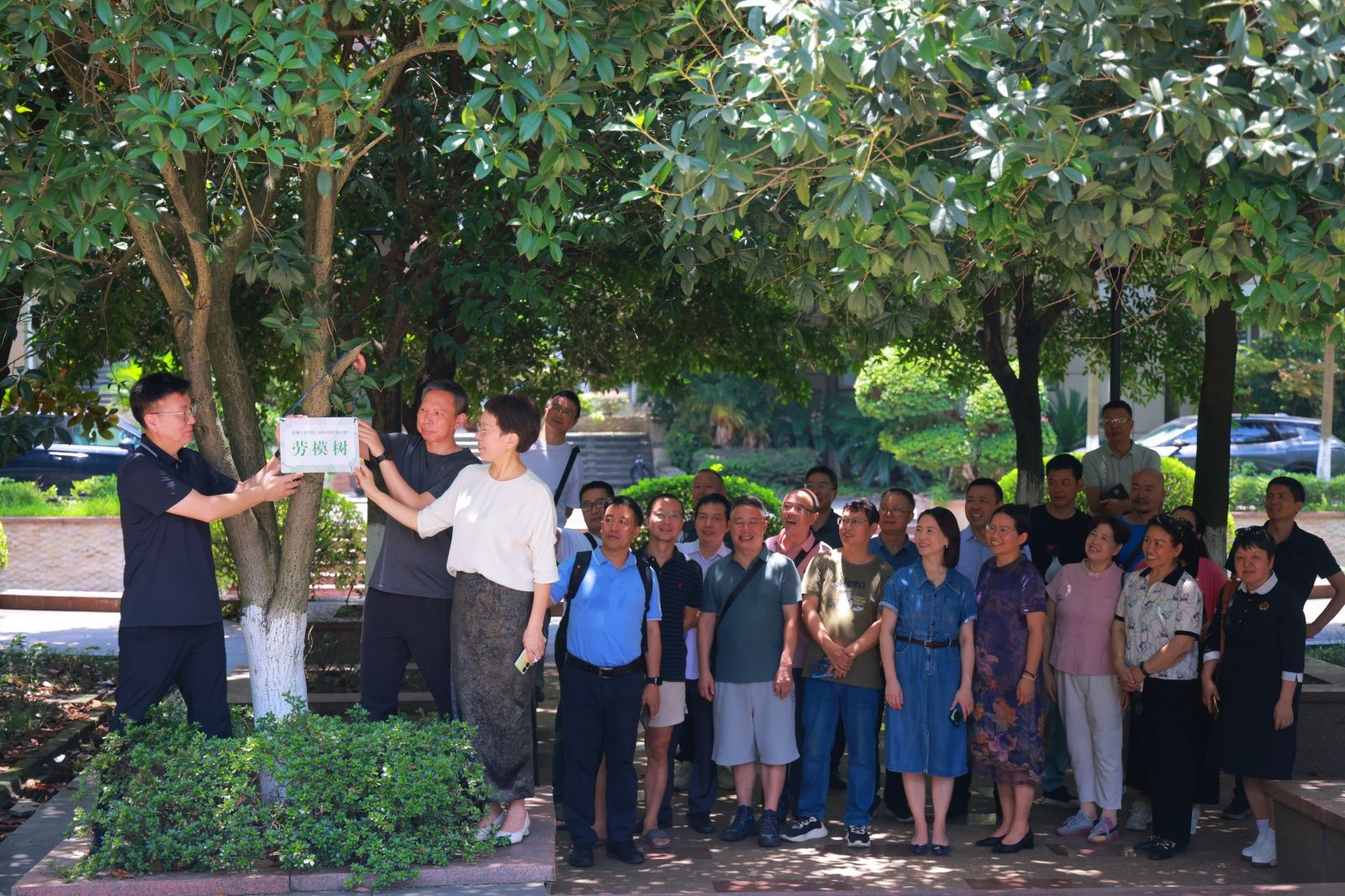 最后,为感恩母校培育、传承劳模精神与工匠品格,班级中涌现的两位全国五一劳动奖章获得者胡彬、杨德正,和返校同学一起进行了茶园校区太阳成集团tyc151cc“劳模树”认捐。