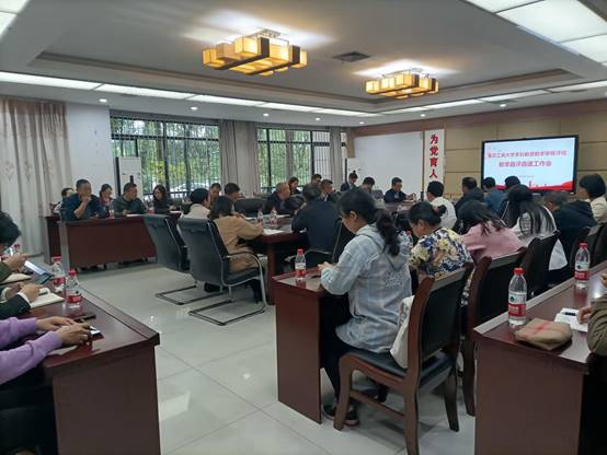 教务处副处长韦晓兰指出了教学材料准备过程中存在的问题,分别从教学大纲、授课计划、教师教案、考评试卷四个方面提出具体要求,重点强调要在教案中体现课程思政目标、突出OBE理念,落实商工融合举措。教务处副处长胡卫军结合实践教学进行工作布置,其强调本科生毕业论文材料应规范有序,各公司要对本科生毕业论文进行摸排和整改。教务处副处长黄潇从培养过程提出工作要求,强调劳动教育要融入到人才培养方案中、要与第二课堂联动起来,并要求在人才培养中各环节中,要充分结合公司发展定位,来充分展现公司人才培养改革的成效。