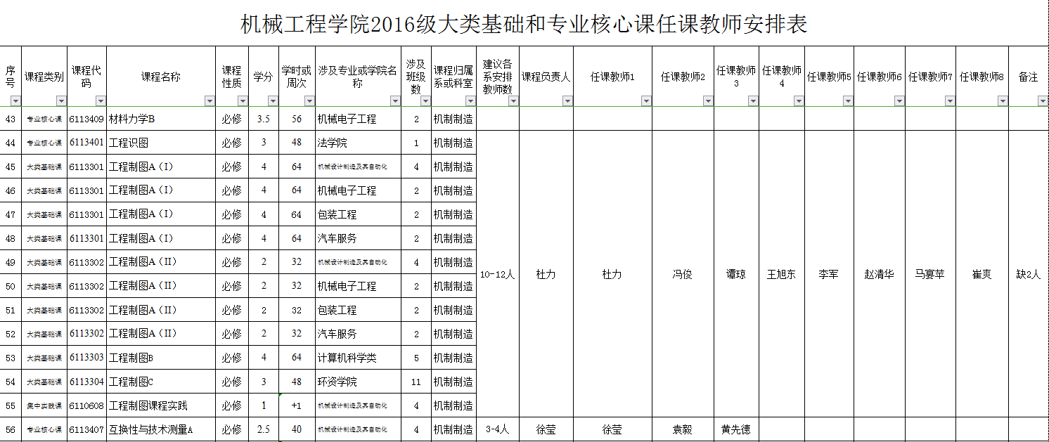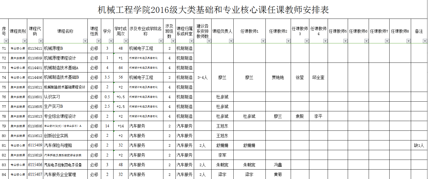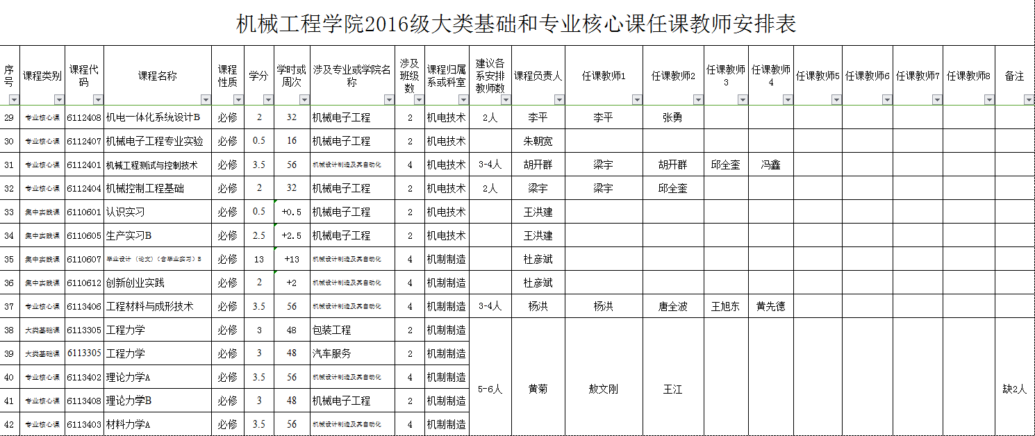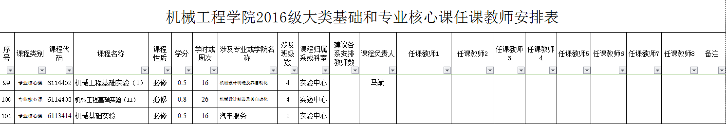 1、鉴于2016级人才培养方案有了新的较大的调整,为实施好相关人才培养计划,通过公司教学指导委员会讨论,并经公司信息会研究,对2016级人才培养方案涉及的大类基础课程及专业核心课程等的教学任务进行了重新安排(具体方案见太阳成集团tyc151cc关于教学大纲等修订(编写)的实施方案,机院【2016】第16号)。具体教学任务安排表见附件,各系原则上应按此表落实具体教学任务,请各位教师提前做好有关教学准备。