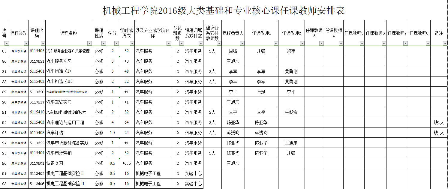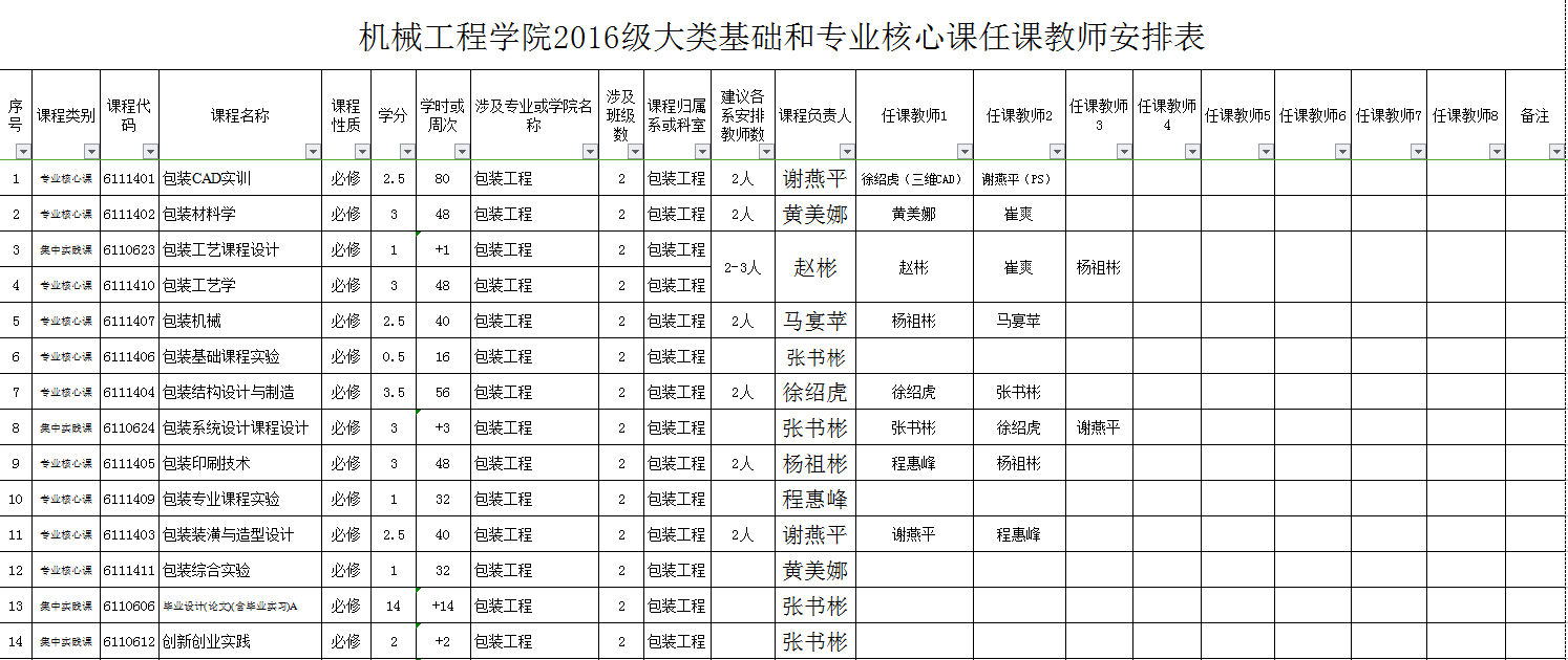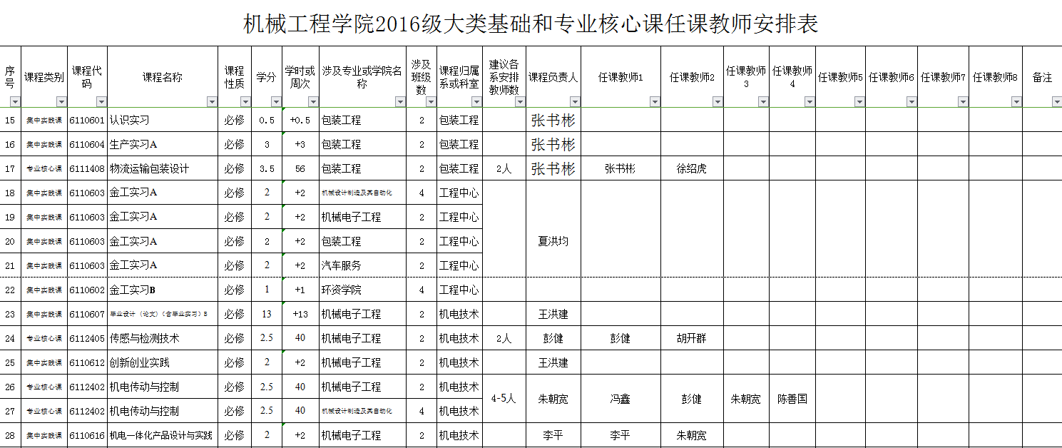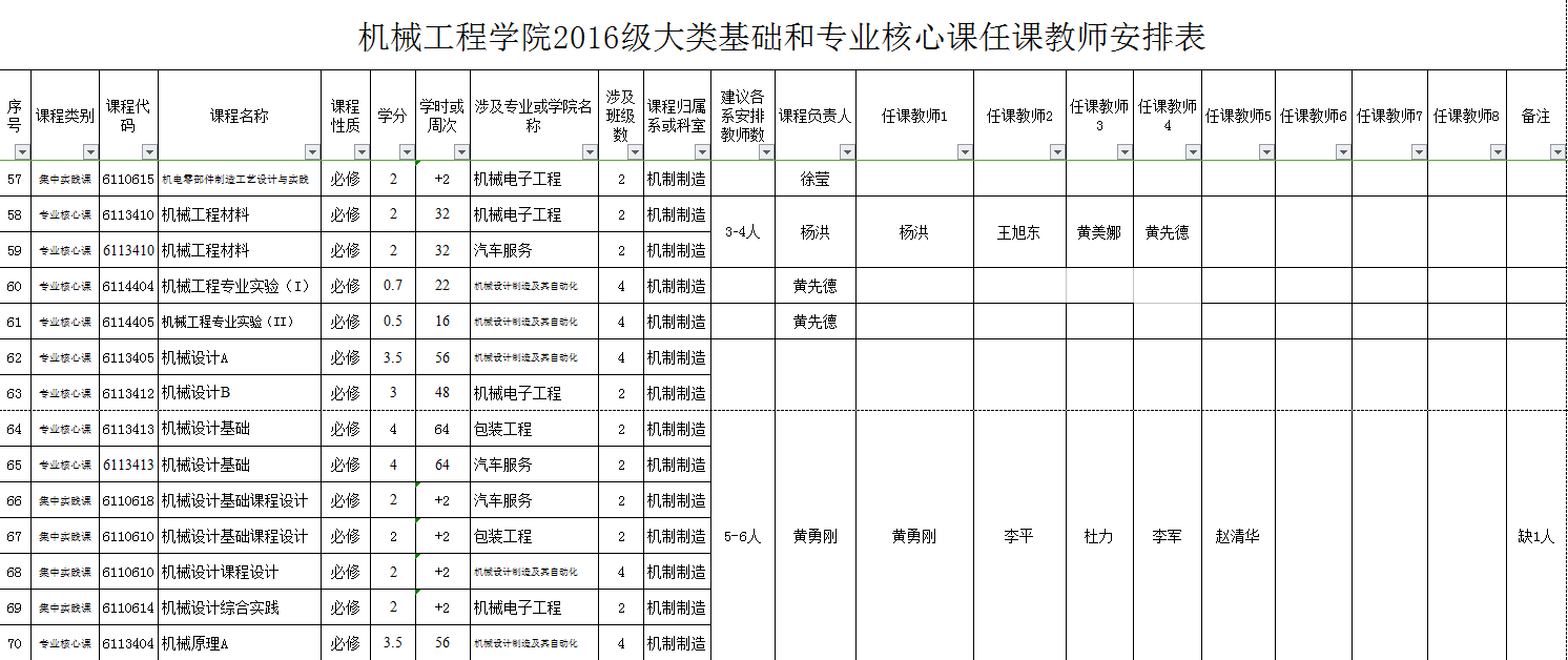 1、鉴于2016级人才培养方案有了新的较大的调整,为实施好相关人才培养计划,通过公司教学指导委员会讨论,并经公司信息会研究,对2016级人才培养方案涉及的大类基础课程及专业核心课程等的教学任务进行了重新安排(具体方案见太阳成集团tyc151cc关于教学大纲等修订(编写)的实施方案,机院【2016】第16号)。具体教学任务安排表见附件,各系原则上应按此表落实具体教学任务,请各位教师提前做好有关教学准备。
