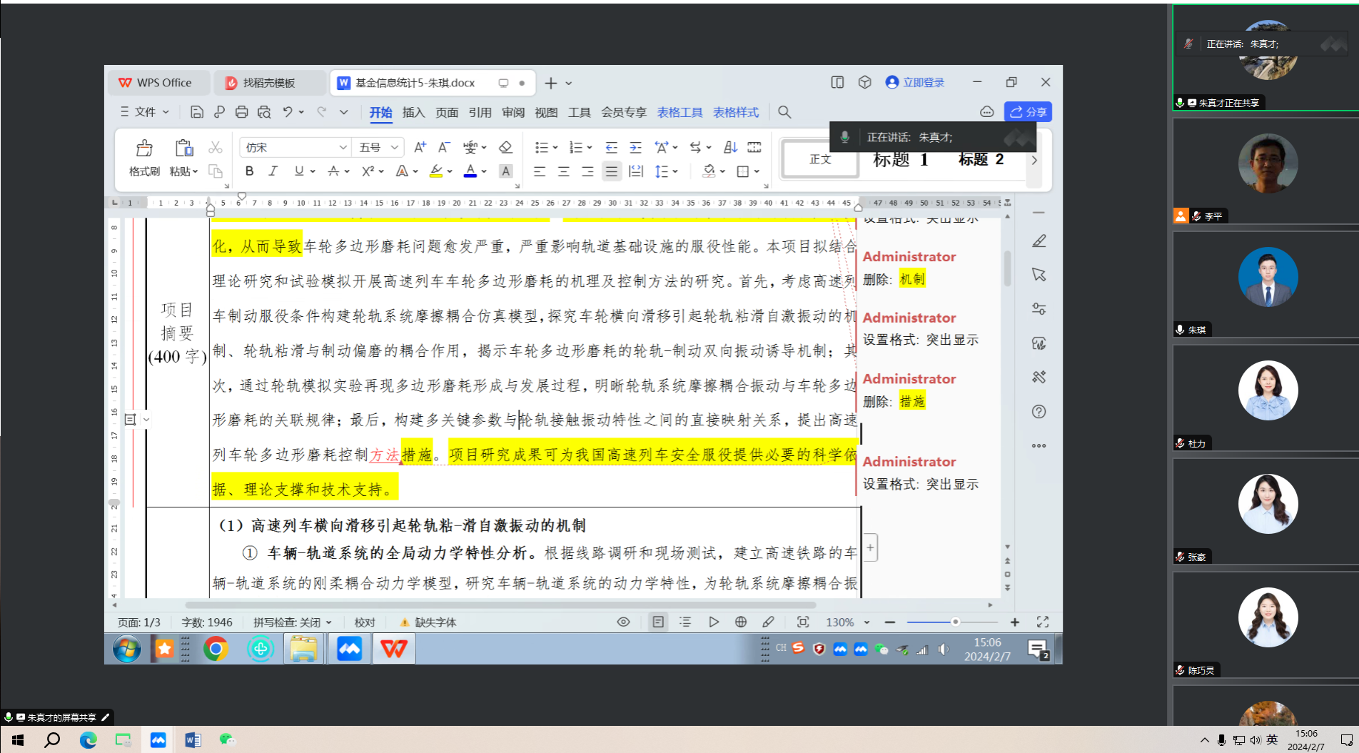 为进一步强化有组织科研,提高公司2024年国家自然科学基金申报质量,2月7日下午,太阳成集团tyc151cc召开基金申请交流会。会议以线上形式进行,邀请“巴渝学者讲座教授”中国矿业大学朱真才教授进行专题指导,太阳成集团tyc151cc副经理李平主持会议,太阳成集团tyc151cc经理杜力及10余位拟申报基金教师参加会议。