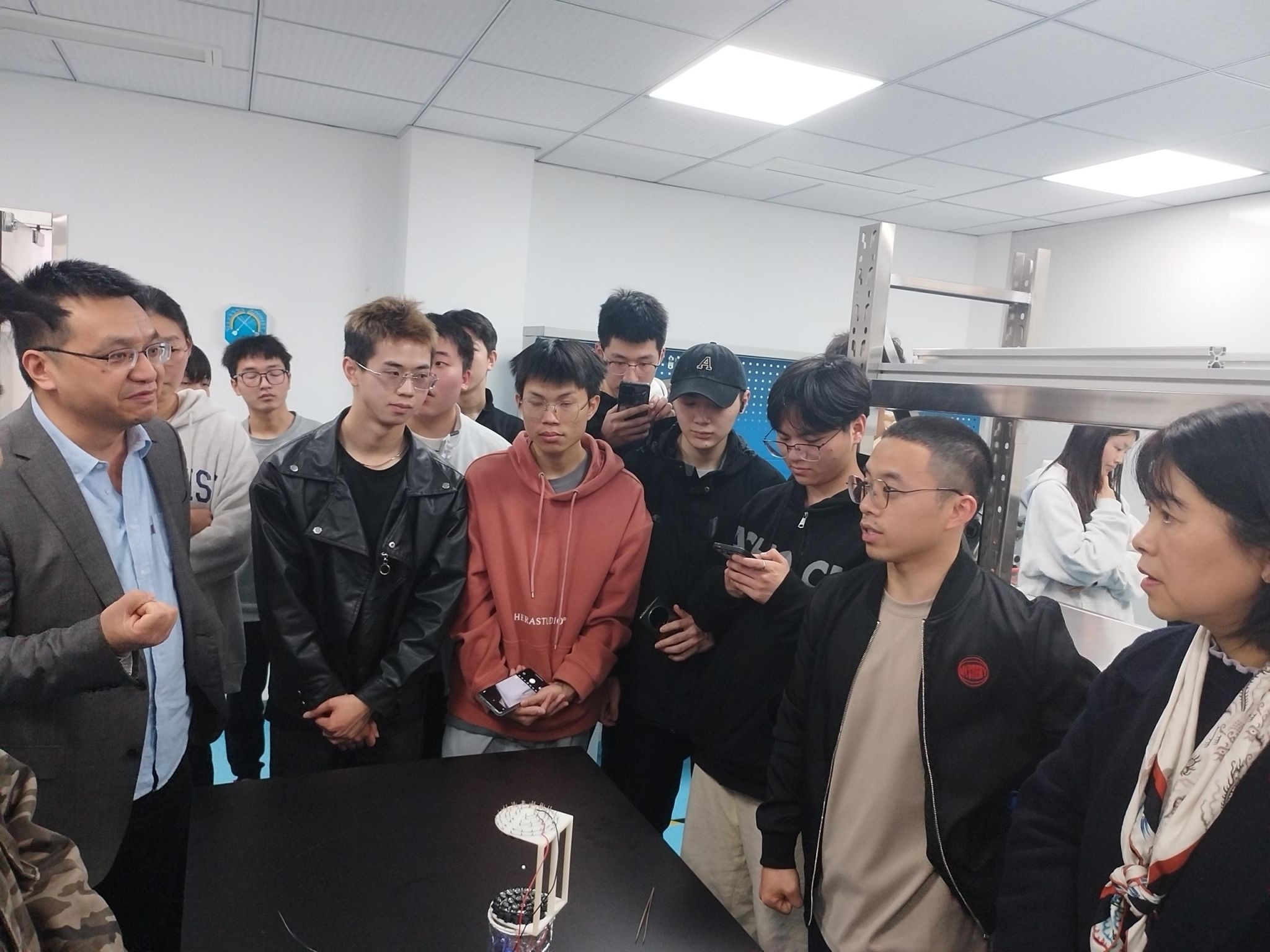 在杨朝初教授的引领下,同学们参观了实验室的各个研究区域,详细了解了实验室的研究方向、成果以及未来发展规划,也感受到了科技创新的无穷力量,心中点燃了为科技强国而努力奋斗的火焰。之后,师生围坐在一起交流互动。教授用浅显易懂的语言,向同学们介绍了实验室的最新研究成果和前沿技术。他鼓励同学们要勇于探索、敢于创新,为国家的科技进步贡献自己的力量。同学们也纷纷发言,他们向教授请教问题,探讨学术前沿,分享自己的见解和思想。他们表示,将以此次参观为契机,更加努力地学习专业知识,积极参与科研工作,为国家的科技发展贡献自己的力量。