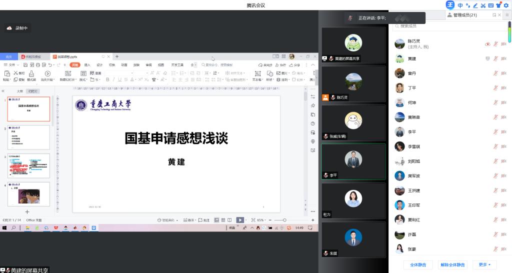 分享结束后,参会老师就申报书撰写的具体问题展开了交流讨论。副经理李平从公司发展以及个人提升的角度,强调了基金申报的重要性,鼓励申报教师多听取同门、同行、专家的建议,为公司2023年国家自然科学基金项目申报取得成绩共同努力。