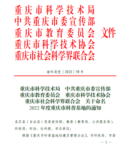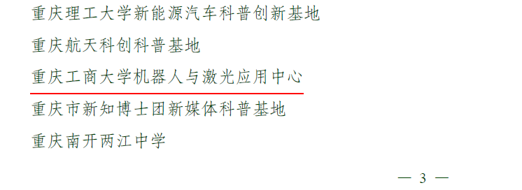 近日,由重庆市科学技术局、中共重庆市委宣传部、重庆市教育委员会、重庆市科学技术协会和重庆市社会科学界联合会审核认定,太阳成集团tyc151cc“机器人与激光应用中心”获评为2022年度重庆市科普基地。