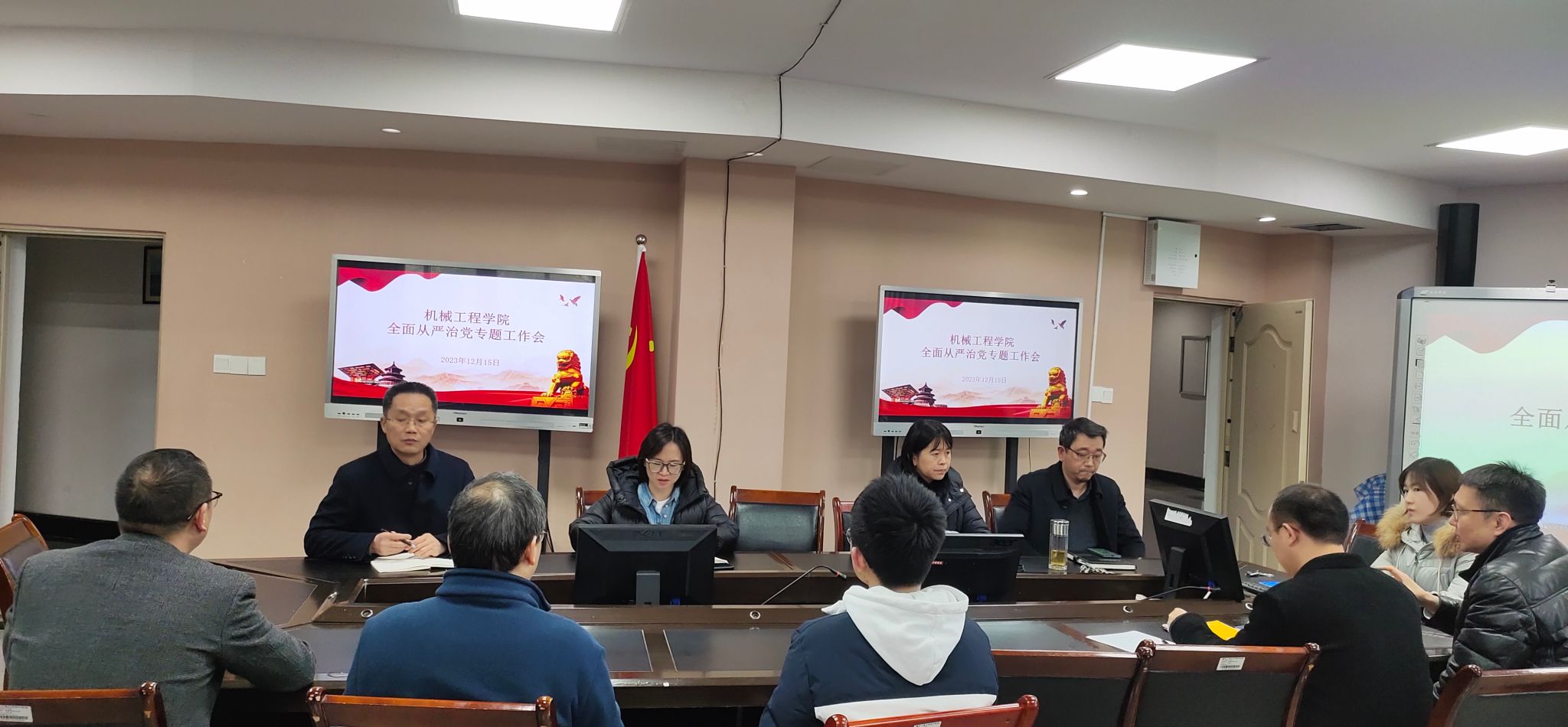 12月15日上午,公司在慧智楼90708会议室召开公司全面从严治党专题工作会。公司党委委员、纪委委员、党支部书记、科级干部、系主任、中心主任、专职辅导员参加了会议。会议由公司党委副书记陈春洁主持。