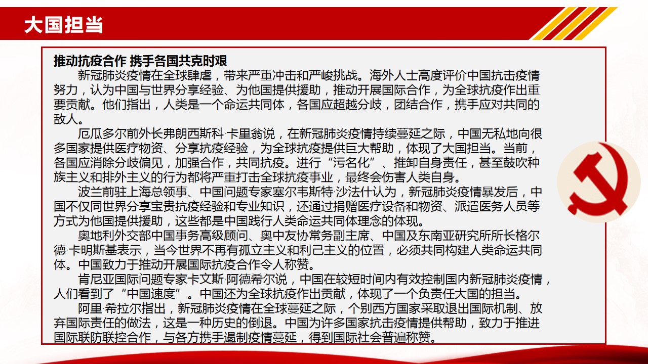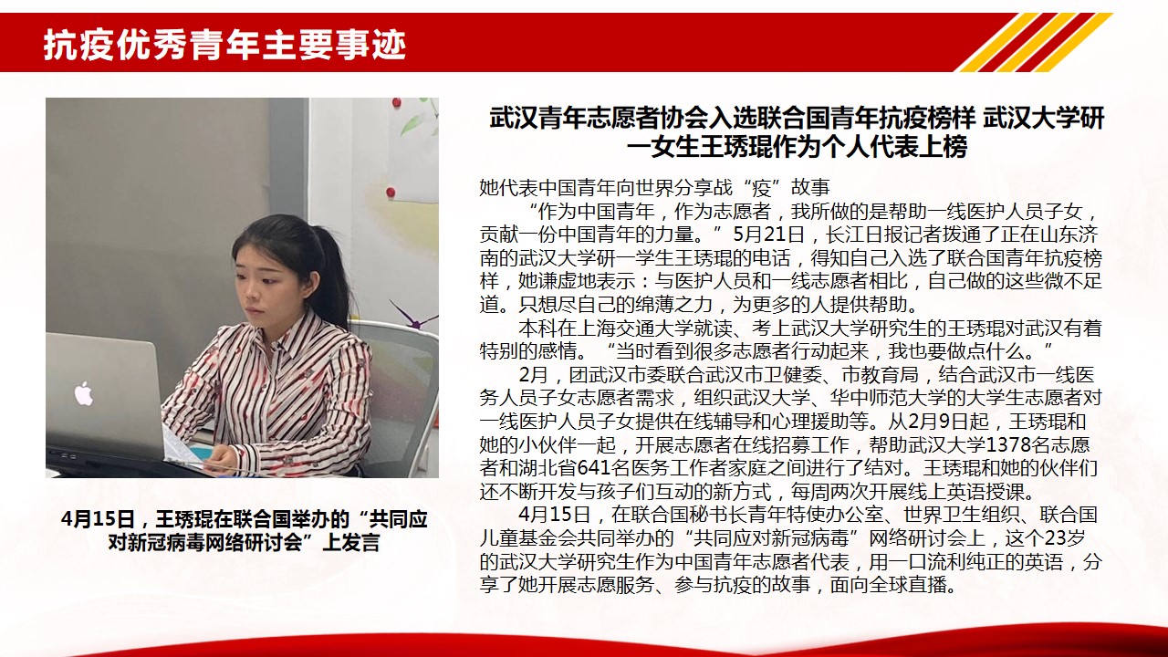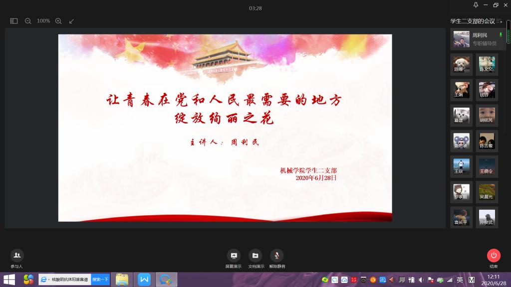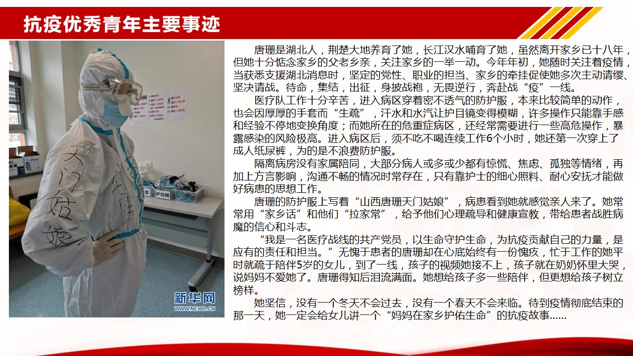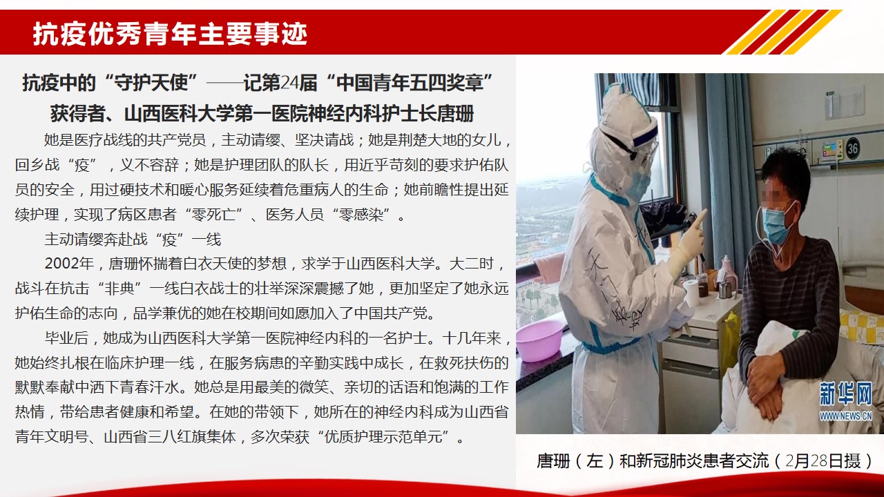 根据公司开展基层党组织常态化疫情防控“四个一”行动和“党课开讲啦”的通知,结合太阳成集团tyc151cc党总支的部署和要求,太阳成集团tyc151cc员工二支部于6月28日通过企业微信在线方式开展了主题党课“让青春在党和人民最需要的地方绽放绚丽之花”。本次党课由支部书记周利民老师主讲,党课以疫情期间冲锋在前的几个典型的优秀青年鲜活的事例为序,带领支部党员再次把目光聚焦在疫情期间的志愿者身上,学习他们勇于担当、践行初心使命的精神。随后,结合《抗击新冠肺炎疫情的中国行动》白皮书,用一组组扎实的数据,带大家一起回顾了新冠肺炎疫情防控取得的显著成效。通过此次学习和总结,支部党员再次感受到了“中国力量”、“中国精神”、“中国社会主义制度的优越性”。抗击新冠肺炎疫情是一场大考,中国展现的出色的疫情防控能力,也为世界防疫树立了典范。