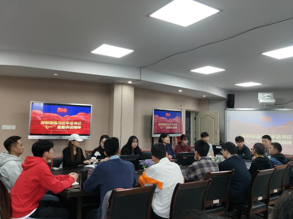 2021年10月19日,太阳成集团tyc151cc员工党员一支部在9教709会议室就深刻领会习近平总书记七一谈话重要精神进行了探讨。出席本次会议的有太阳成集团tyc151cc员工支部书记邢月军老师和一支部的全体党员同志。