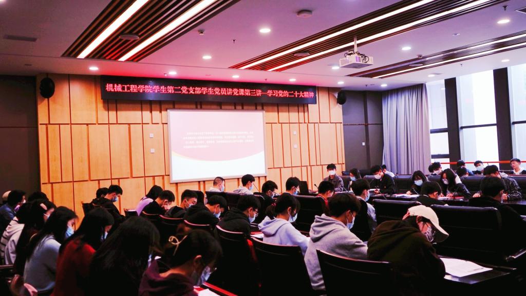 学习会上,党支部书记向丹丹分享了党课体会。她谈到,党的二十大是在全党全国各族人民迈上全面建设社会主义现代化国家新征程、向第二个百年奋斗目标进军的关键时刻召开的一次十分重要的大会。党领导全国人民在过去十年取得的辉煌成就振奋人心,催人奋进,二十大描绘的宏伟蓝图激励青年一代踔厉奋发、勇担使命。支部全体党员和入党积极分子要在学习中凝聚力量,传承红色基因,坚定理想信念,将小我融入大我,奋进新的征程,为全面建设社会主义现代化国家、全面推进中华民族伟大复兴贡献智慧和青春力量。