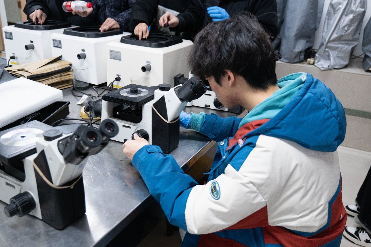紧接着,选手们将材料送入抛光机进行进一步的细致处理,在整个过程中他们需要细致观察,直至打磨到工件表面无划痕。去腐蚀操作阶段,机器运作的同时,选手们需要及时向机器中添水,直至能够观察到珠光体。这个过程看似简单却精度要求极高,需要选手们精准把控腐蚀时间、液体配比等各个环节,整个比赛中技术难度最大的环节考验着选手们的细心度与观察力。
