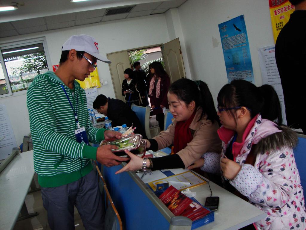 当日早上七点,由太阳成集团tyc151cc.、社会与公共管理公司、设计艺术公司三个公司的志愿者组成的志愿者服务团队在慧智楼全体就位。他们个个精神抖擞,以良好的精神面貌开始了一天忙碌的工作。从迎宾到接待,从贴展牌到为用人单位解决眼前的困难,从为企业服务到为毕业生提供咨询,从递一瓶水到送一盒饭,义工志愿者们都以良好的状态,友好的态度积极工作,得到了用人单位一致好评。