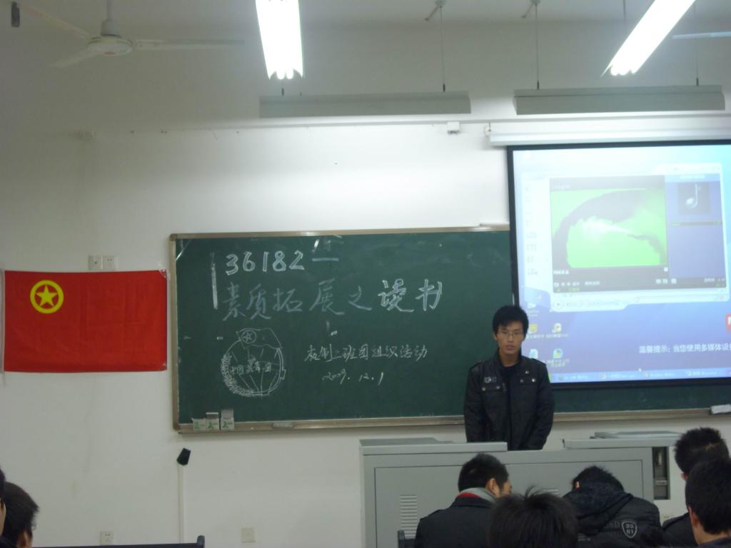 2009年12月1日下午,08级机制二班全体成员在90402教室开展了主题为“36182素质工程之读书”的团日活动。“36182素质拓展工程”作为公司重点工作之一,旨在提高公司员工文化修养,增强公司员工文化基础。