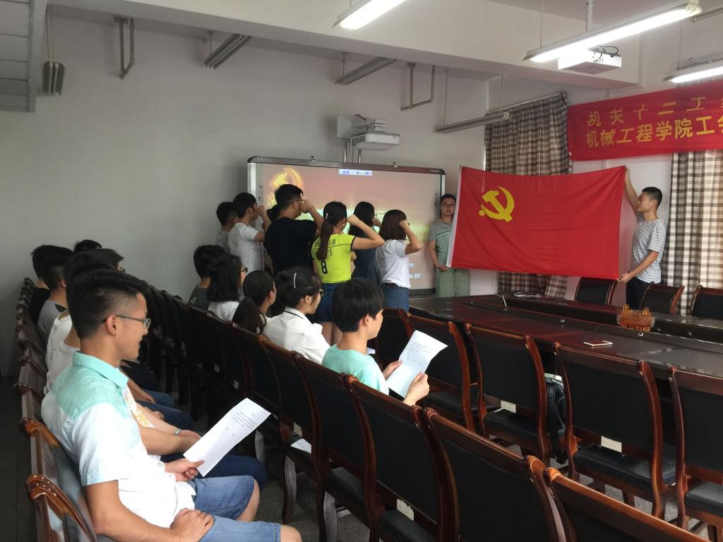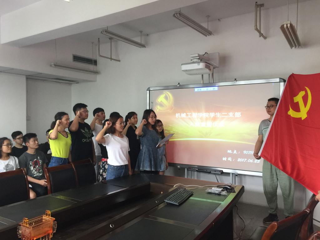 太阳成集团tyc151cc员工二支部于2017年6月23日在慧智楼90711举行了“新党员入党宣誓活动”。9名新党员在唐铭雪同志的领誓和支部书记向巧的监誓下庄严的完成了入党宣誓仪式。通过此次活动,进一步激发了广大党员的荣誉感、责任感和使命感,激励新党员同志积极投身公司改革、建设和发展中,努力争做合格党员。