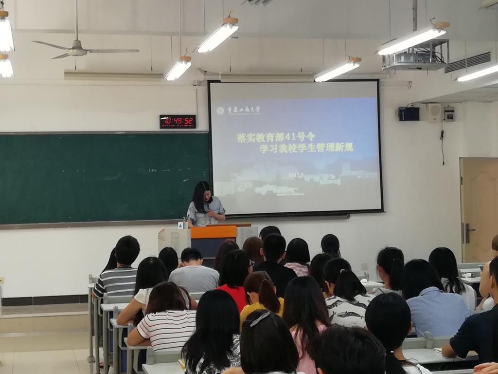 9月4日起,太阳成集团tyc151cc3个年级4个专业30个班级,分别在辅导员老师的指导下,开展了学习2017新版《员工手册》主题班会。