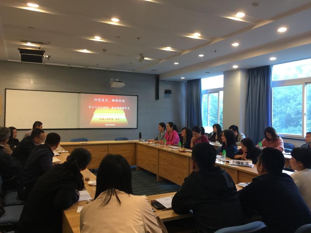 接着,参会老师们针对如何将“十九大”精神结合到自己的实际工作中?辅导员如何进行自我提升?辅导员如何有效开展科学研究?辅导员如何提高自己的工作效率与职业技能?非思政专业辅导员如何加强理论学习?等问题展开讨论,分享了自己在实践工作中的宝贵经验,为员工工作有效开展和辅导员队伍建设建言献策。大家纷纷表示,辅导员的“获得感”和“幸福感”来源于与员工共同成长的每一天,“青年兴则国家兴,青年强则国家强”,作为青年教师,我们应该肩负起党和国家赋予我们的神圣使命,帮助青年员工努力成为有理想、有追求、有担当、有作为、有品质、有修养的新时代的大好青年。