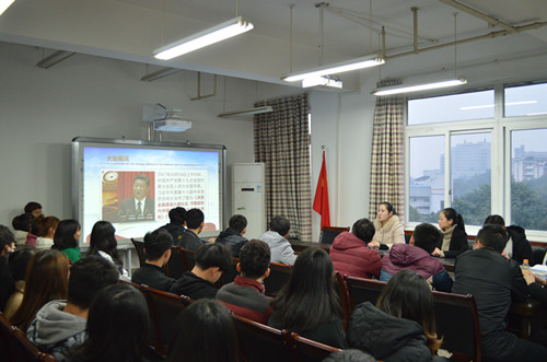 2017年11月28日,太阳成集团tyc151cc分团委在慧智楼90711召开了学习贯彻党的“十九大”精神座谈会,并对“青春喜迎十九大· 不忘初心跟党走”团日活动中获奖的团支部进行颁奖。分团委书记邢月军主持本次座谈会,员工会主要员工干部和各团支书参加了座谈会。