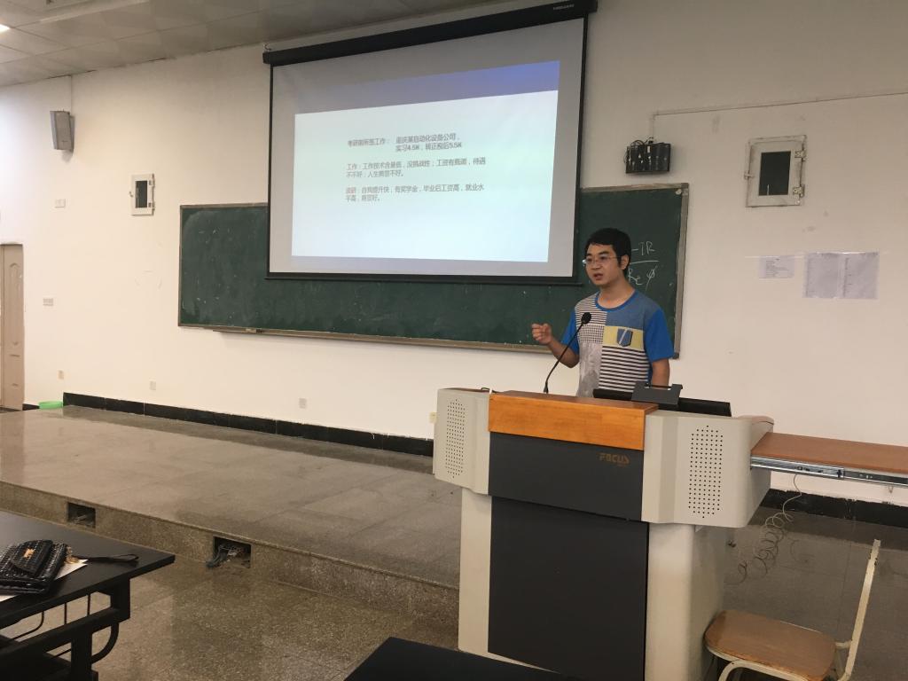 紧接着,公司考取四川大学的2013级机制专业毕业生罗冲、考取西南交通大学的2014级机制专业毕业生彭敬康、考取湖南工业大学的2014级包装专业毕业生张贤珍、考取西南财经大学的2014级汽服专业毕业生罗维怡分别做考研经验分享,从公司专业选择、备考心态调整、笔试复习要点、面试注意事项等各方面向同学们做了分享。四位同学细致的讲解内容,轻松的分享方式深深吸引了到场同学们的注意力,同学们纷纷表示收获颇丰。