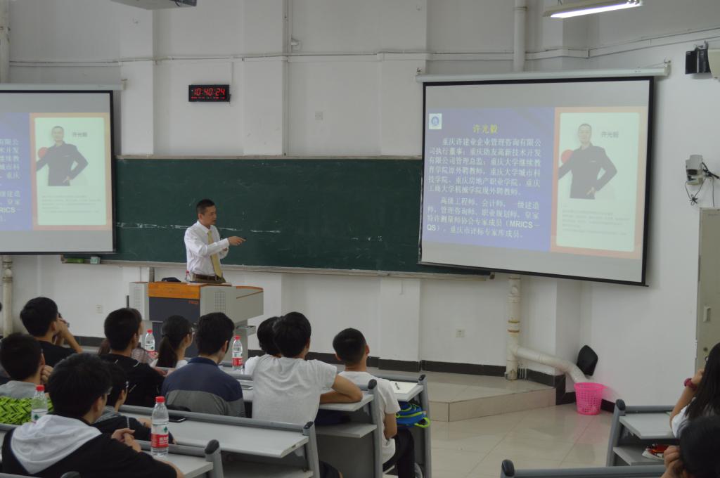 首先公司全体院领导、各系主任和各科室负责人与全体新生见面,欢迎并鼓励新同学。接下来由杜力经理介绍公司的整体情况,让新生从公司历史、学科特色,重要活动,公司就业,科创团队等方面了解公司;党总支书记刘洋为新生上了一堂《关老员工活的几点建议》为主题的第一堂思想政治课,从如何适应环境、专业学习、能力锻炼、政治素质要求、安全意识等方面为新生提供了一个全面和完善的大学学习和生活的建议。接着分团委书记邢月军对学科竞赛和员工组织进行介绍,并阐述了《太阳成集团tyc151cc员工学科竞赛认定为实践教学环节的规定》,旨在规范员工参加各级学科竞赛活动的组织和管理,提高员工参与学科竞赛的积极性,鼓励新生拓展视野、多参加各类学科竞赛活动。最后教务办公室主任邱全奎对教学管理、学分绩点、大类培养等要求作了全面的介绍;帮助员工尽快熟悉大学的培养方式。第二个环节由员工代表——重庆许建业企业管理咨询有限公司执行董事许光毅为新生做了一堂生动幽默的职业规划专题讲座,帮助员工以“认识自己”、“理解职业与专业的关系”为基础,“规划自己”,设定好生涯目标,立足当前专业学习,放眼未来职业发展需要,在进大学之初学会做好自己的学业和职业规划。最后,各系主任分别对新生进行专业教育,引导新生乐观积极的迎接大学学习生活,掌握正确的学习方法