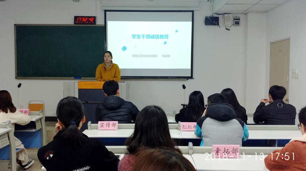 2018年11月13日下午5:40公司分团委员工会在南岸区慧智楼90201开展“诚信教育”主题教育活动,旨在进一步加强员工干部的诚信教育,增强员工诚信意识,树立正确的世界观、人生观、价值观。公司分团委书记邢月军,员工干部代表参加了此次活动。