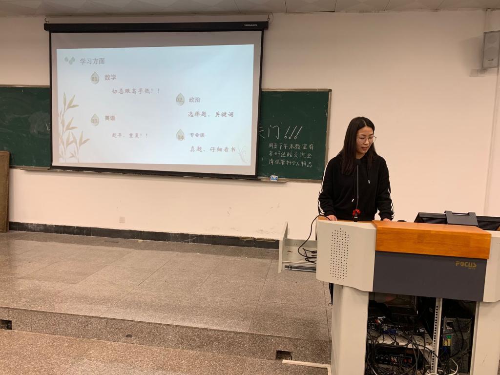 4月19日下午2点,太阳成集团tyc151cc在90210教室举行了2019年考研动员暨经验分享会。本次会议由学团办主任李玲老师主持,公司刘洋书记、张晓琴副书记、李平副经理以及2016级辅导员邢月军老师、秦杉老师出席了本次会议。