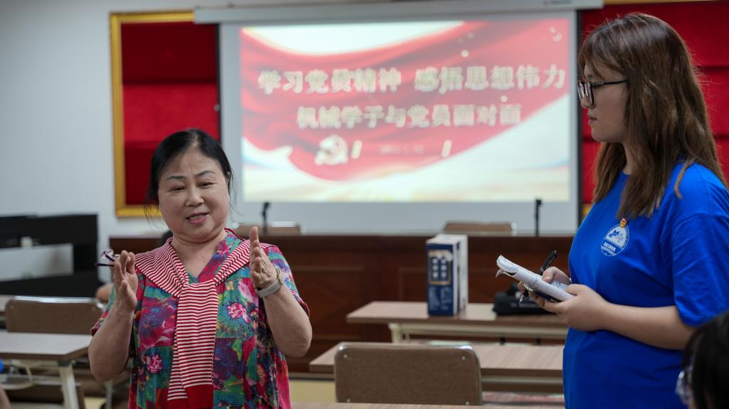 炎炎夏日挡不住志愿者们的热情,怀揣着对在制造业一线奋斗几十载的“前辈”老党员的崇高敬意,清晨,实践队员们与老党员亲切交谈,仔细询问了生活中遇到的问题,关心着老人的身体状况,聆听着年轻时的英雄事迹。65岁的杨长慧曾在兵工厂工作五年,后又在北京工作了8年的队长,她为国家奉献了热烈的青春,尽个人之力,为国家做出了巨大的贡献。时光漠然,40年党龄在她脸上刻下为人民服务的痕迹。