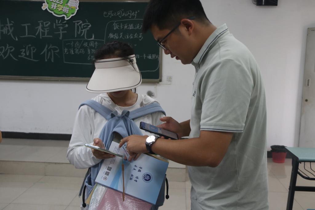 迎新当日,公司领导和老师们早早地来到接待点,等候新同学们的到来。2023级新生辅导员刘静、周委和顾咸霜老师也来到教室报到处,帮助新生完成掌上迎新。