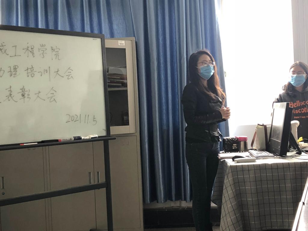 2021年11月5日,太阳成集团tyc151cc员工助理培训暨评比表彰会在90903会议室召开。本学年全体员工助理、上一学年员工助理代表参加会议,公司分管勤工助学工作的向丹丹老师出席会议。