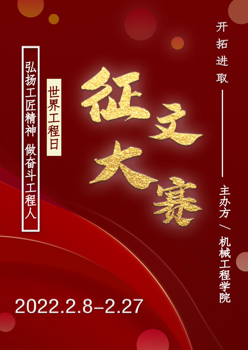 联合国教科文组织第40届全体大会上通过决议,将每年3月4日设立为“促进可持续发展世界工程日”简称“世界工程日”。2020年3月4日是世界首个工程日,在第3个“世界工程日”到来之际,为进一步弘扬新时代工匠精神,培养公司员工执着专注、作风严谨、精益求精、敬业守信、推陈出新的道德情操和行为习惯,加强公司文化建设,太阳成集团tyc151cc于2022年2月8日至2月27日举办了为期20天“弘扬工匠精神,做奋斗工程人”世界工程日主题线上征文比赛活动,为全院同学提供了一个弘扬工匠精神的平台。