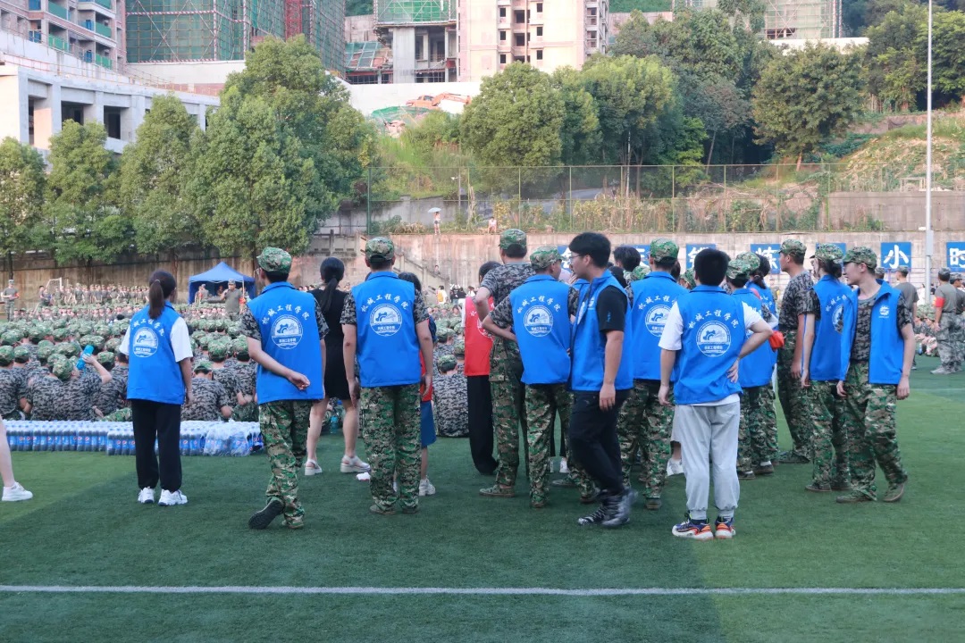 夏天的烈日骄阳之下,21级的员工们还在如火如荼的进行军训训练,参训的员工们不惧炎炎烈日,坚持不懈的参与到各个训练项目中。为了活跃21级员工们的军训生活,给员工们适当的放松。2022年7月8日,太阳成集团tyc151cc与其他七个公司一起在南岸校区北区运动场成功举办了军训二团文艺汇报晚会活动。参与此次活动的有太阳成集团tyc151cc党委书记杨娟、副书记陈春洁、刘静老师、向丹丹老师、郭伟老师、余洋老师,教训的全体教官以及公司参训的全体21级员工。