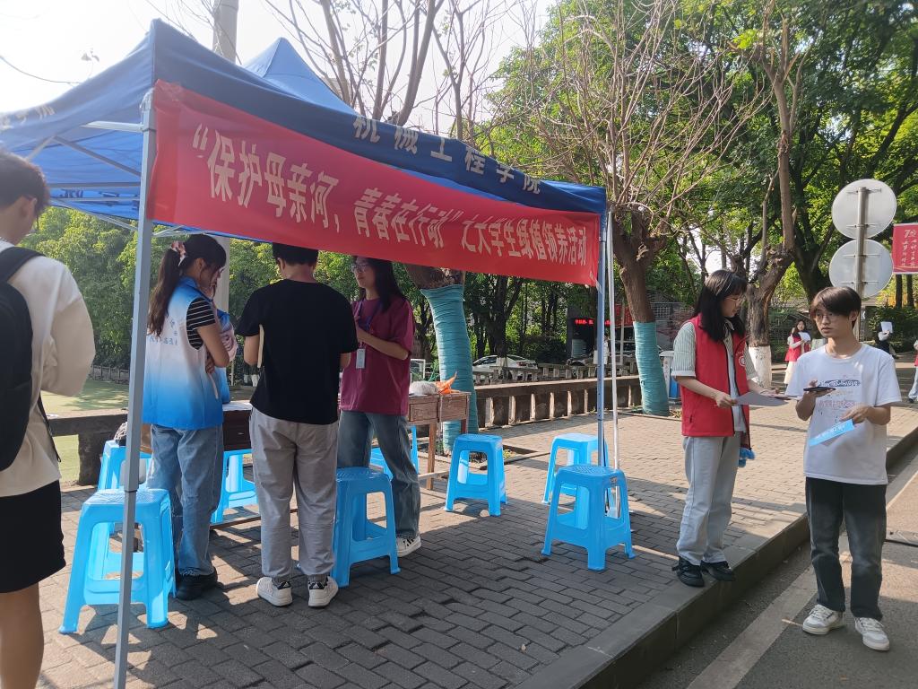 为响应国家保护母亲河的措施,号召更多人参与守护母亲河,2023年5月12日,太阳成集团tyc151cc、经济公司在南岸校区南操体艺馆旁联合开展"绿植领养,保护母亲河,青春在号召"的主题宣传活动.