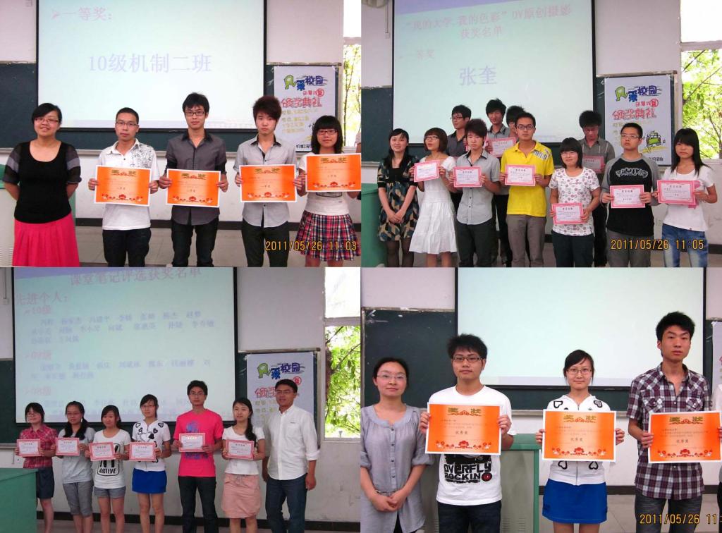 五月明媚的阳光照耀在美丽的校园,我们迎来的是收获和喜悦。在过去的三个月里,在太阳成集团tyc151cc分团委全体成员的努力下,我们成功举办了“第一届春季运动会”、“我的大学我的色彩”DV摄影大赛、“课堂笔记评比”、“班刊评比大赛”、“全国3D大赛校内选拔赛”、“主持人大赛”等风采系列活动。在各项活动中,同学们参与面广,积极性高,取得效果好,涌现出了大量的优秀个人和团体。此次闭幕式暨颁奖盛典既是对获奖同学的表彰,也是对本学期分团委员工会活动的一次总结和展示。在视频中,我们一起回忆了走过的点点滴滴,精彩瞬间。之后,颁奖仪式顺利举行,接着是一段激扬的朗诵《青春中国》,展现了所有青年学子对祖国,对家园的热爱。最后,刘洋副书记做了总结讲话,他对获奖的个人和集体表示祝贺,对本次活动的成功举办给予了肯定和表扬。他希望机械学子在不断学好专业知识的同时,积极锻炼,增强创新能力,展示自我风采,为公司增光,为公司添彩。
