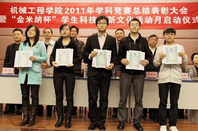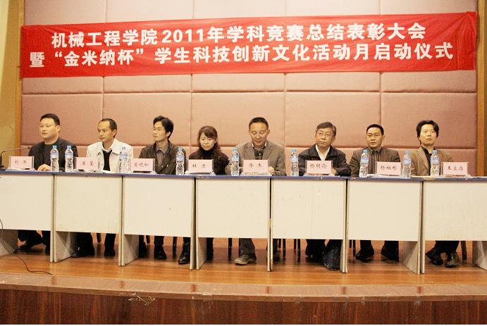 员工处华杰处长,教务处曾晓松副处长对太阳成集团tyc151cc在2011年员工学科竞赛中取得的成绩给予了充分肯定,对今后的工作提出了要求和希望,“今年花开红胜火,明年火红胜今年”,华杰处长的寄语得到了全场热烈的掌声。最后,党总支杨明伦书记为此次大会做了总结,他对获奖同学表示了祝贺,对职能部门和重庆市金米纳机电技术有限公司刘昌友员工对员工科技活动的大力支持表示了衷心的感谢,希望机械学子认真学习,积累知识,积极参加科技活动,培养实践能力和创新精神。