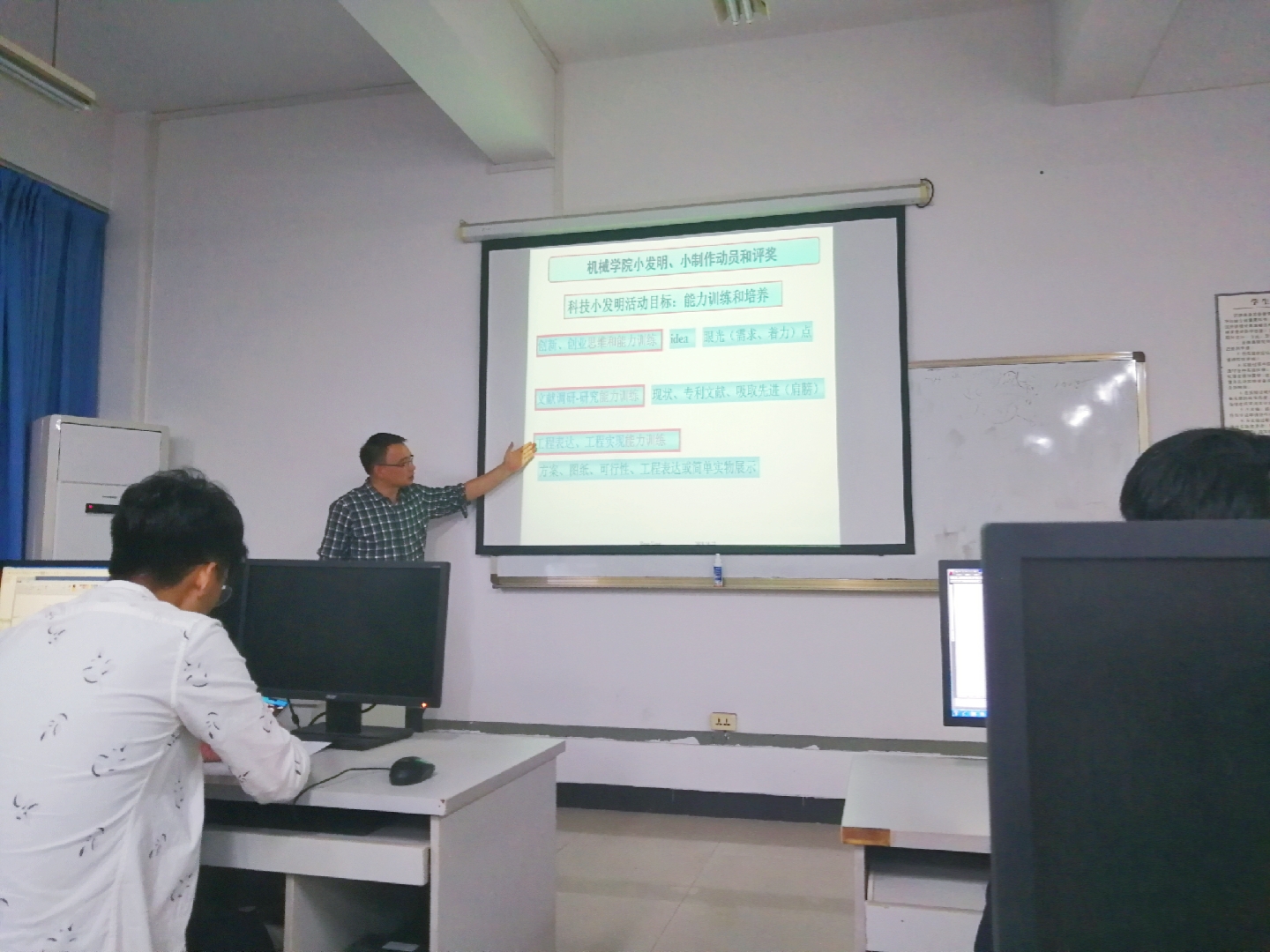 2019年10月18日晚,太阳成集团tyc151cc在10209教室举行了小发明小创作比赛宣讲会,主讲为机电系副主任杨洪老师。