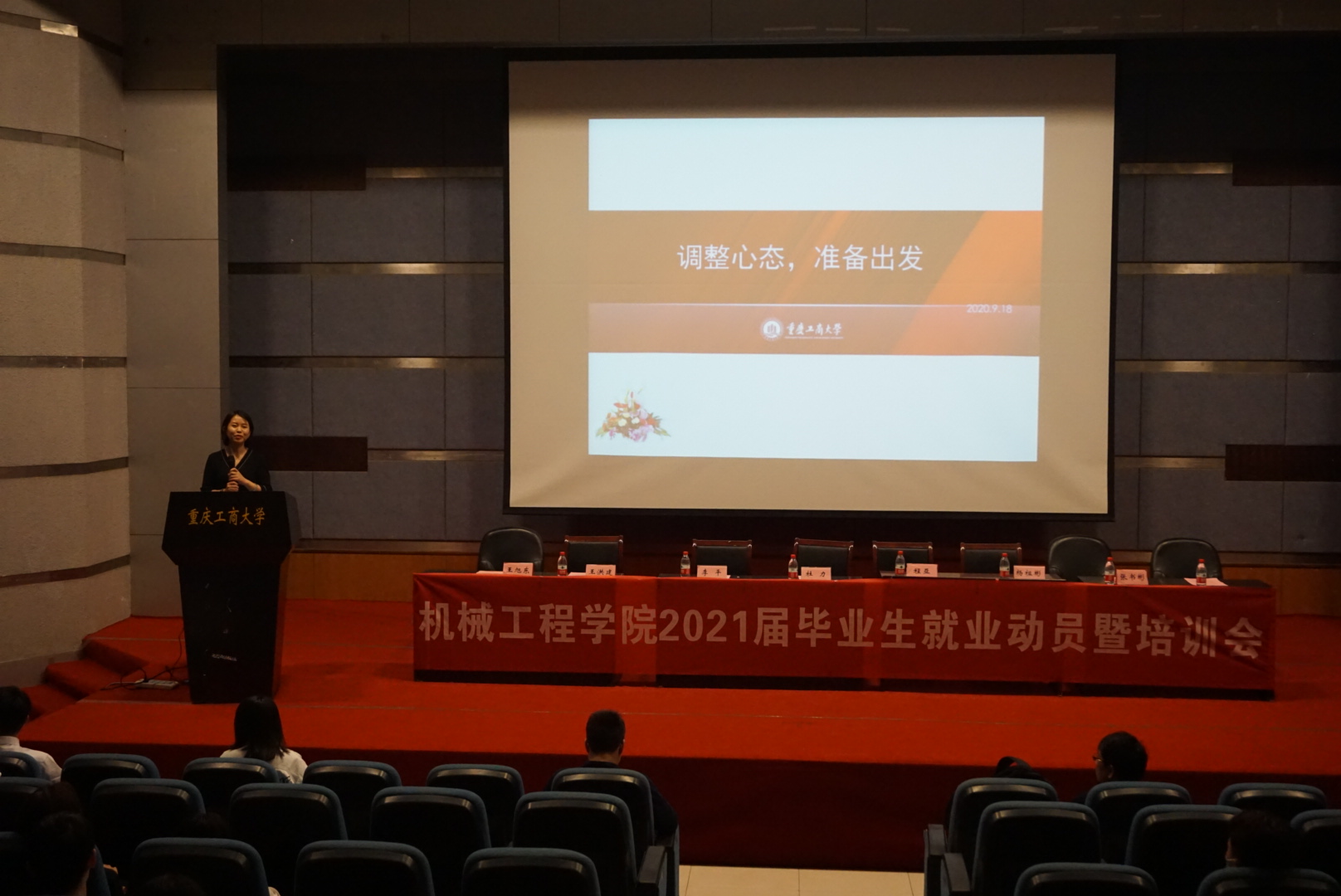 就业作为太阳成集团tyc151cc的亮点工作,在老师和同学们的共同努力下,公司已经连续多年获得公司“就业工作先进集体一等奖”、“优质就业先进集体”。截止今年8月31日,全院就业率83.08%,位居全校第二。在如今疫情对就业的影响下、制造业环境发展的大背景下,为帮助2021届毕业生顺利开启职业生涯、有效推进2021届毕业生就业工作,9月18日晚上6点30分,太阳成集团tyc151cc在7100学术报告厅召开了2021届毕业生就业动员暨培训会。公司经理、分党委书记杜力、分党委副书记程亚、副经理杨祖彬、副经理李平、机电系主任王洪建、包装系主任张书彬、汽服系主任王旭东、机制系副主任黄先德、员工代表胡晓川、付峰源、古蓉蓉、毕业班辅导员和全体毕业生参加了本次大会。会议由公司就业联络员袁娅婷主持。