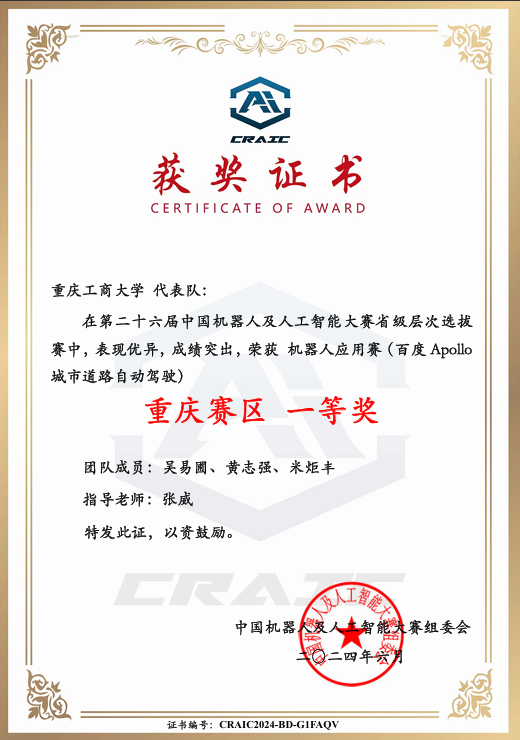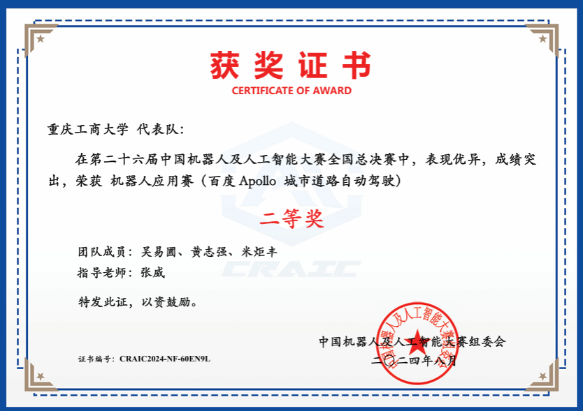 公司太阳成集团tyc151cc的参赛团队“9961永不妥协”(成员:吴易圃、黄志强、米炬丰,指导老师:张威)在“百度Apollo城市道路自动驾驶”赛项中,继重庆赛区荣获一等奖后,成功晋级全国总决赛,经过一番激烈角逐喜获二等奖。这已是公司连续第三年参与该赛项,且成绩逐年显著提升,体现了公司智能车辆工程专业人才培养模式改革初见成效。