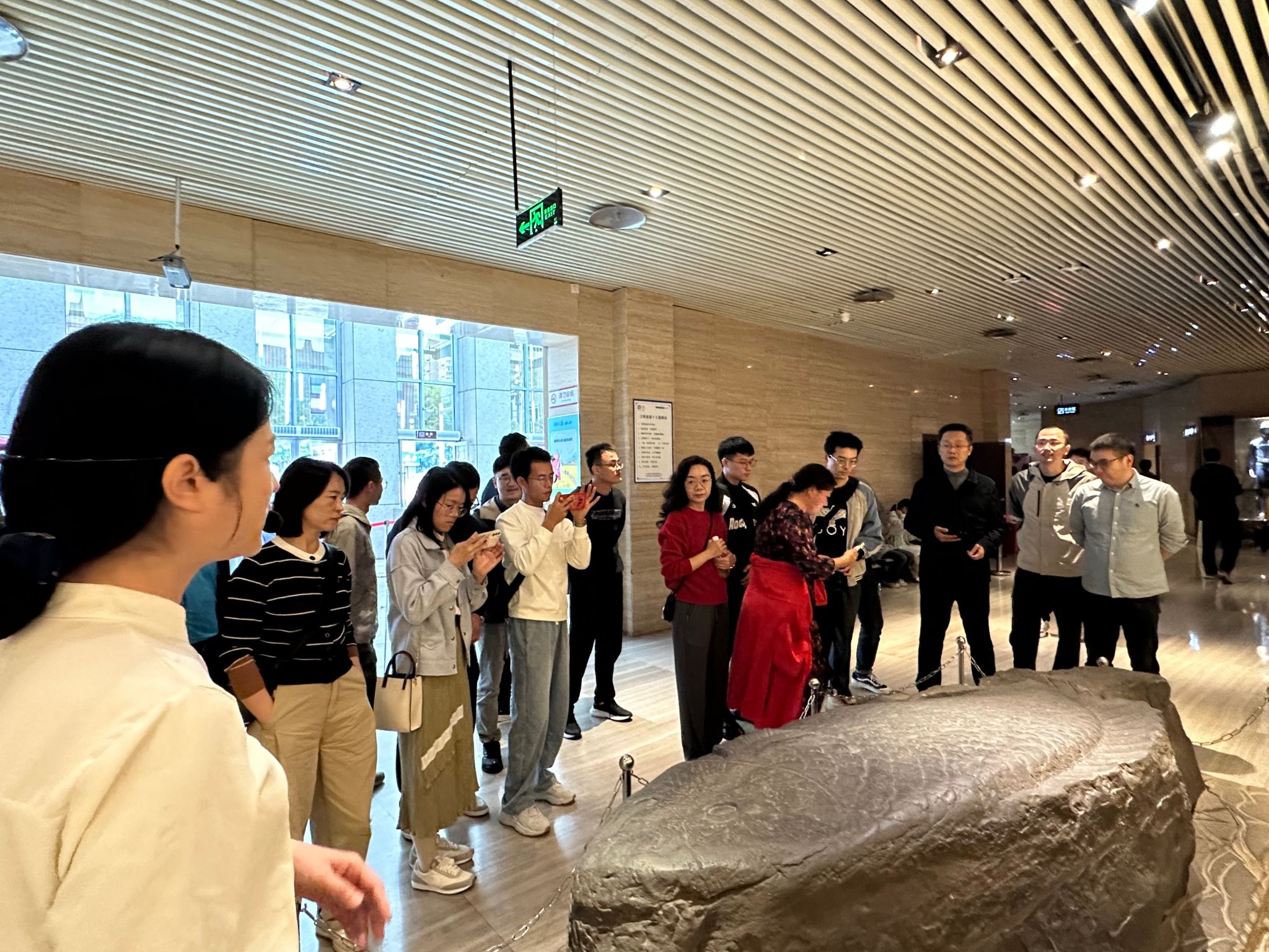 “白鹤绕梁留盛迹,石鱼出水兆丰年”,刚到目的地,老师们就被博物馆外墙上的石刻对联所吸引。带着对古人观水、治水智慧的敬仰,大家跟随导游讲解,从水上展厅到水下博物馆,不时互相交流、讨论,也对保护水下文物的举动点赞。当老师们看到经历千年依旧清晰可辨的石刻文字时,纷纷表示自己仿佛穿越时空,与古人对话。