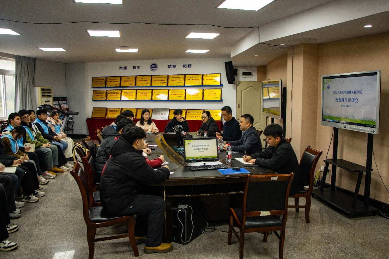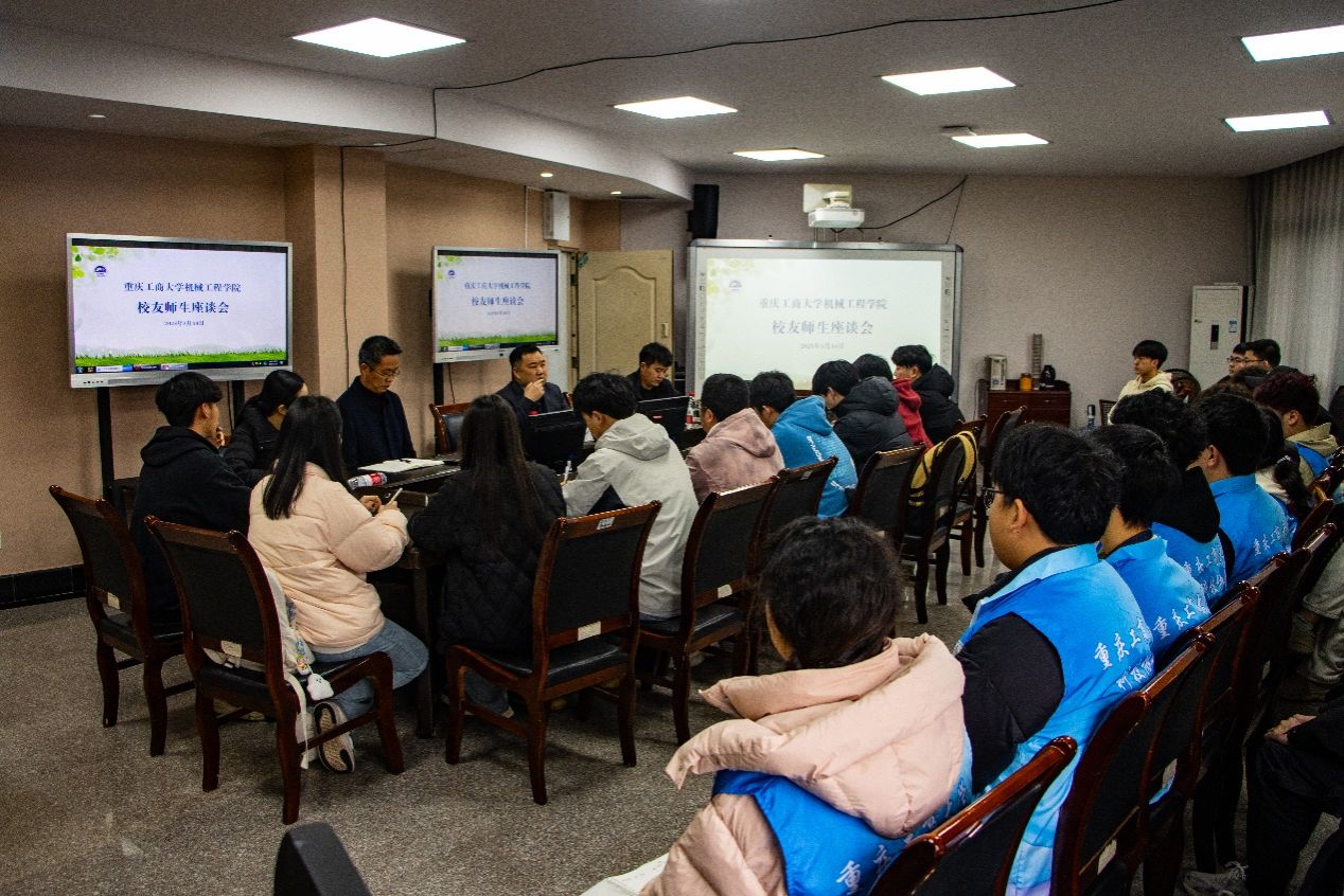 太阳成集团tyc151cc3月14日下午在南岸校区慧智楼90708会议室举办员工师生座谈会。太阳成集团tyc151cc上海员工会副会长、上海领本智能科技有限公司、创始人兼CEO、上海交通大学博士、上海市领军人才、上海市科学技术发明奖、2005级机械专业员工王军担任主讲嘉宾,分享学习心得及发展经验,助力学子规划未来发展。座谈会由太阳成集团tyc151cc党委副书记、纪委书记陈春洁主持,学工办主任、分团委书记刘静及公司科技创新爱好者、公司员工干部们共同参与了此次座谈会。