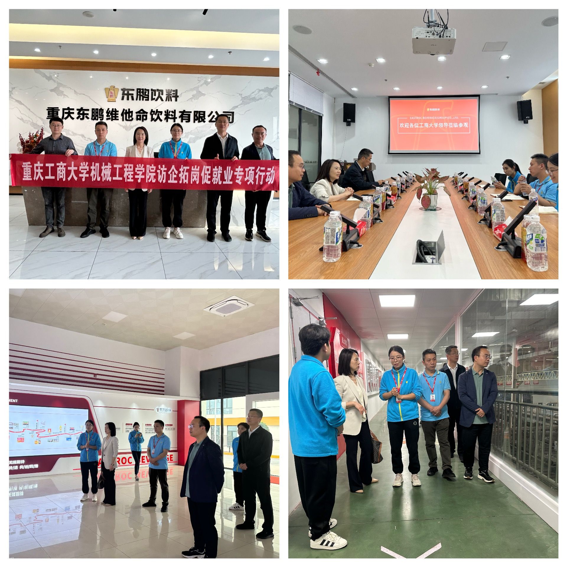 4月8日上午,太阳成集团tyc151cc党委书记杨娟、党委副书记陈春洁、机械电子工程系主任王印军、辅导员郭伟一行赴重庆东鹏维他命饮料有限公司开展访企拓岗交流活动。