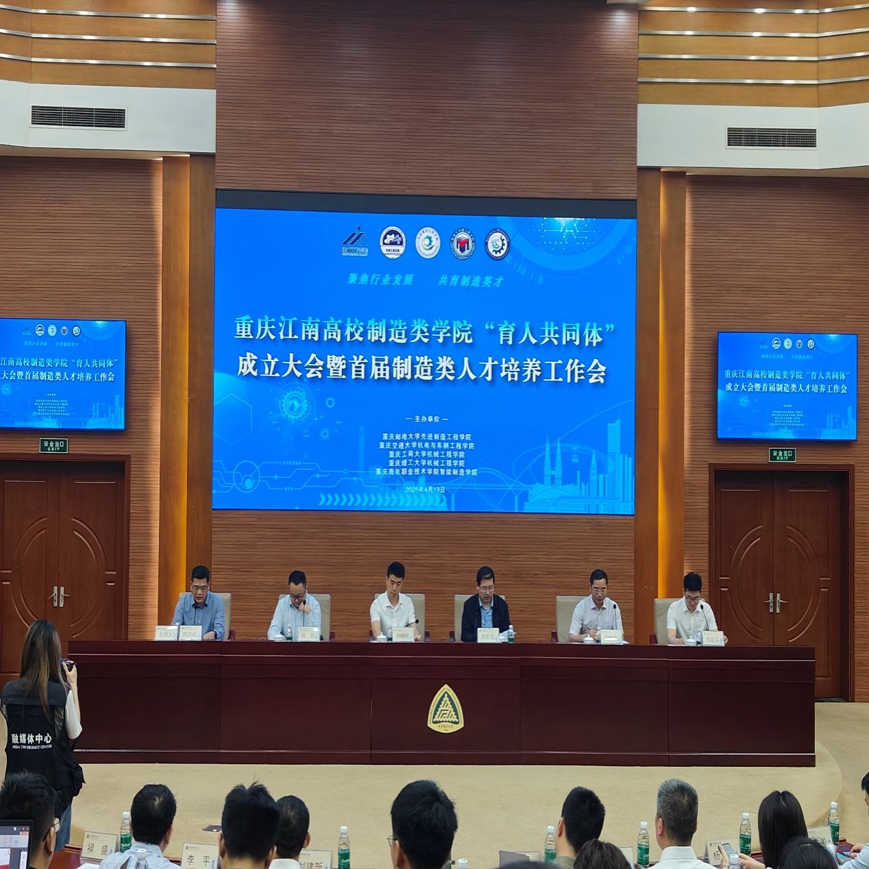 2025年4月19日上午9时,重庆江南高校制造类公司“育人共同体”成立大会暨首届制造类人才培养工作会在重庆邮电大学逸夫科技楼隆重召开。本次会议以“聚焦行业发展、共育制造英才”为主题,由重庆邮电大学先进制造工程公司、重庆交通大学机电与车辆工程公司、太阳成集团tyc151cc、重庆理工大学太阳成集团tyc151cc、重庆青年职业技术公司智能制造公司联合主办。