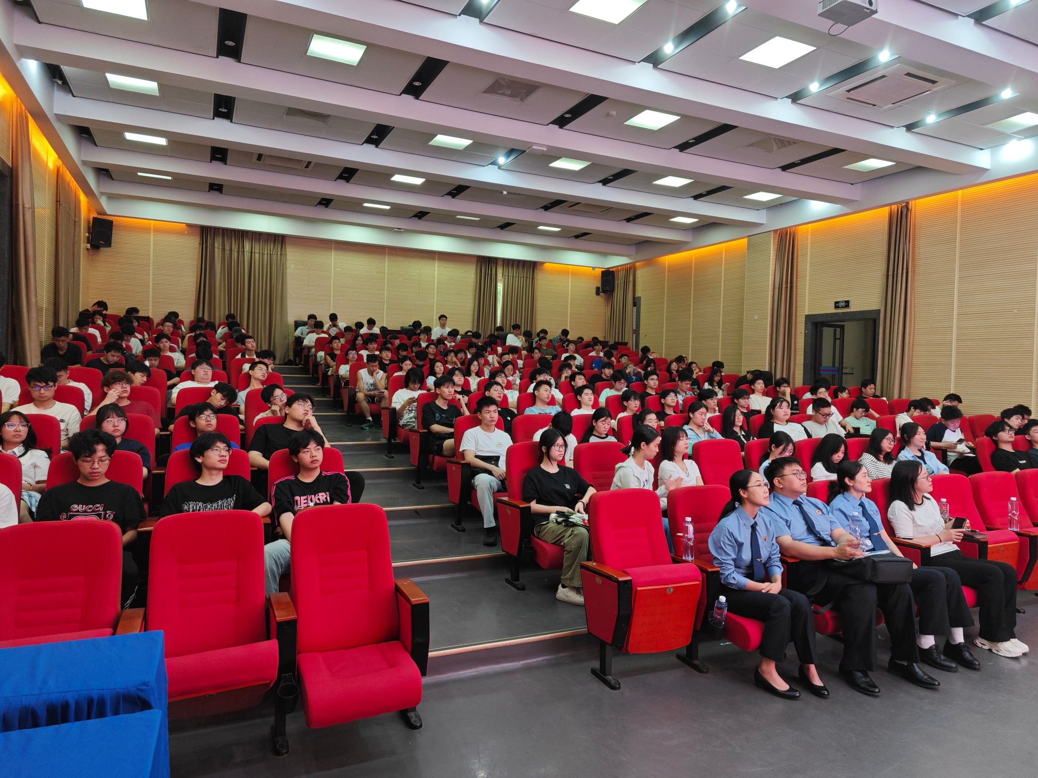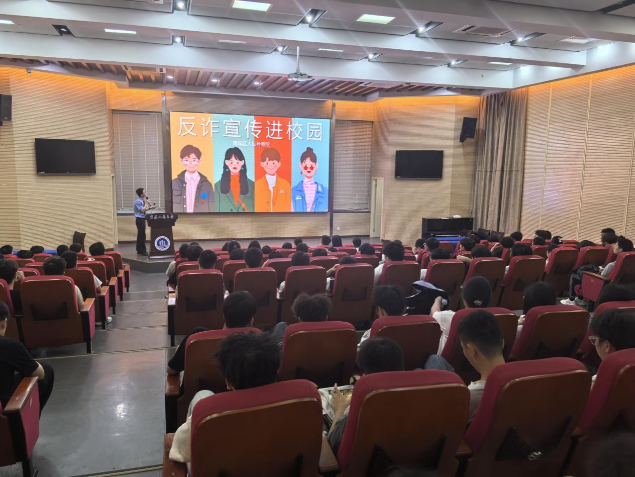 2025年5月13日上午,太阳成集团tyc151cc邀请重庆市南岸区人民检察院刑检部门办案人员,在太阳成集团tyc151cc兰花湖报告厅开展《青春护航,反诈同行》主题反诈宣传活动。本次活动面向太阳成集团tyc151cc全体大一员工,旨在通过专业讲解,帮助同学们提高反诈意识,筑牢校园反诈防线。