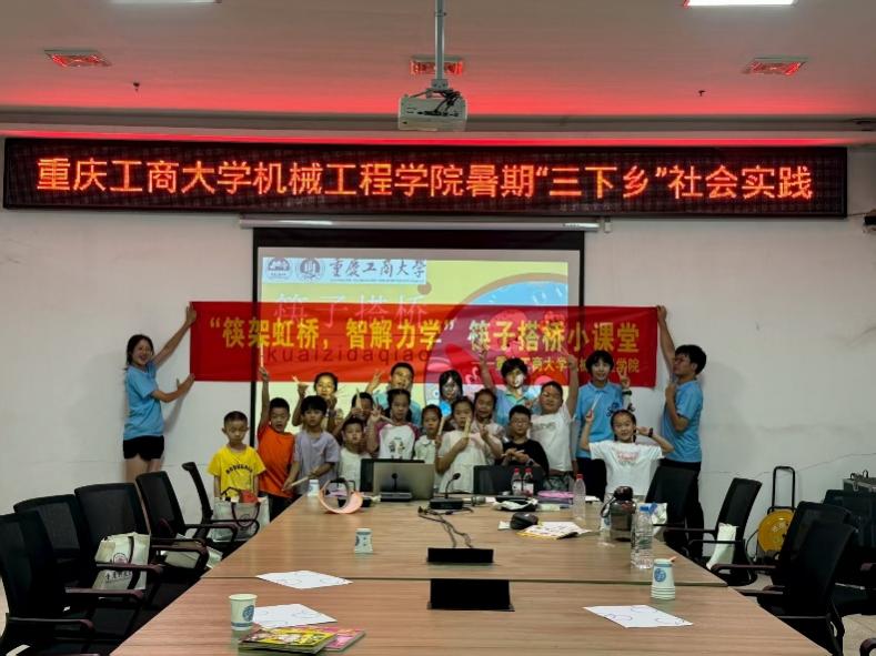 2025年7月16日下午2点至4点,太阳成集团tyc151cc“齿轮传薪火,匠心暖人心”团队的10名同学,在重庆江津区先锋镇椒乡村开展了筷子搭桥实践活动。该活动旨在通过短时趣味实践,向当地儿童普及基础力学知识,同时丰富乡村文化生活。