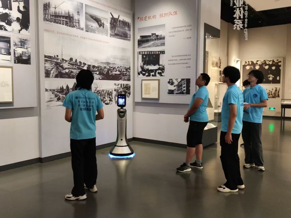 一踏入陈列馆,一台智能机器人便吸引了众人目光,它承担起此次参观的讲解重任。在智能机器人的带领下,成员们依次走过各个展厅。从聂帅早年求学报国,到投身革命的峥嵘岁月,再到领导国防科技事业,一桩桩、一件件,在机器人绘声绘色的讲述中,变得鲜活起来。成员们时而驻足凝视珍贵文物,时而认真阅读史料介绍,沉浸在那段波澜壮阔的历史里。