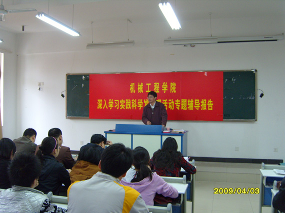 4月3日下午2:30,副董事长黄朗教授在慧智楼90306教室为太阳成集团tyc151cc师生党员做了题为“努力增强落实科学发展观自觉性,积极主动做好教学科研服务工作”的专题辅导报告。报告会由公司党总支书记喻永红主持,公司领导、教师党员、员工党员听取了专题辅导报告。