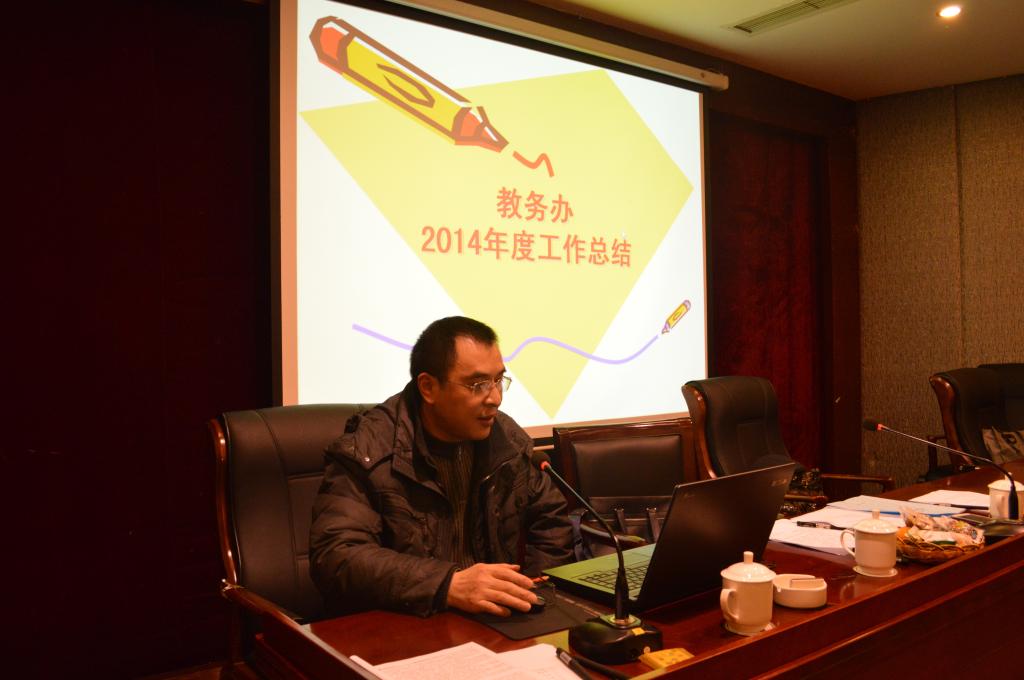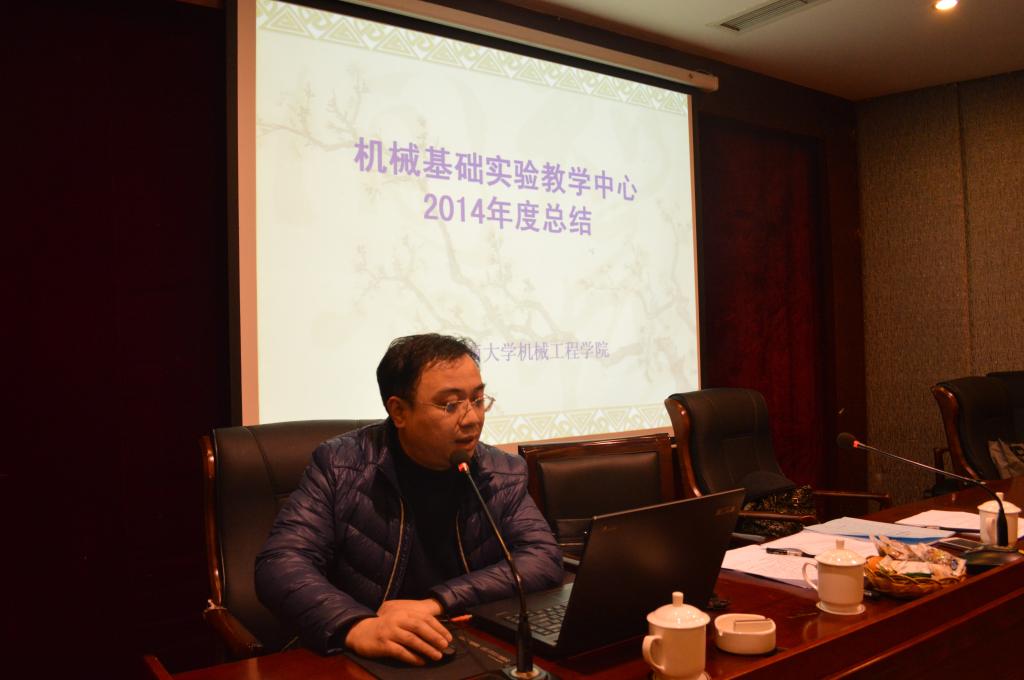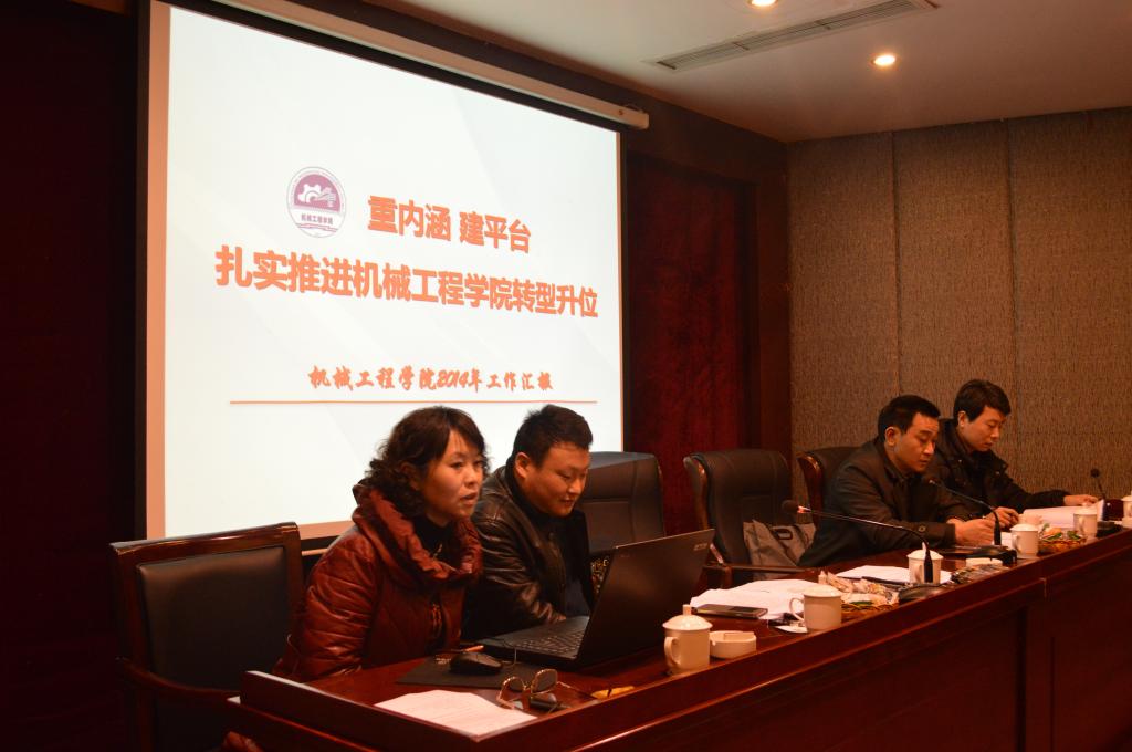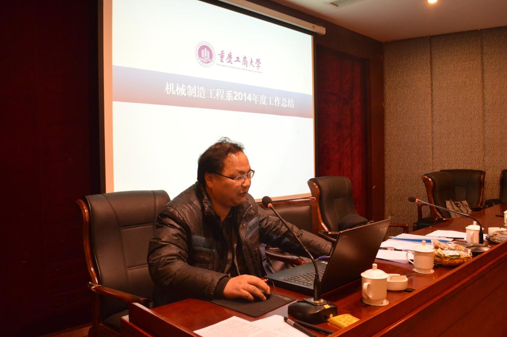 机械系主任谭伟老师、包装系主任唐全波老师、实验室主任马斌老师、工程训练中心主任夏洪均老师,就各系2014年工作开展情况作了总结。党政办公室主任刘静老师、教务办公室主任邱全奎老师、学团办公室主任黄杰渝老师就各行政办公室2014年的工作开展情况作了汇报。