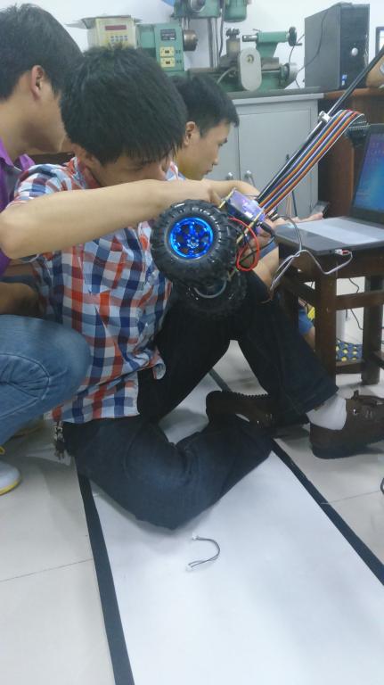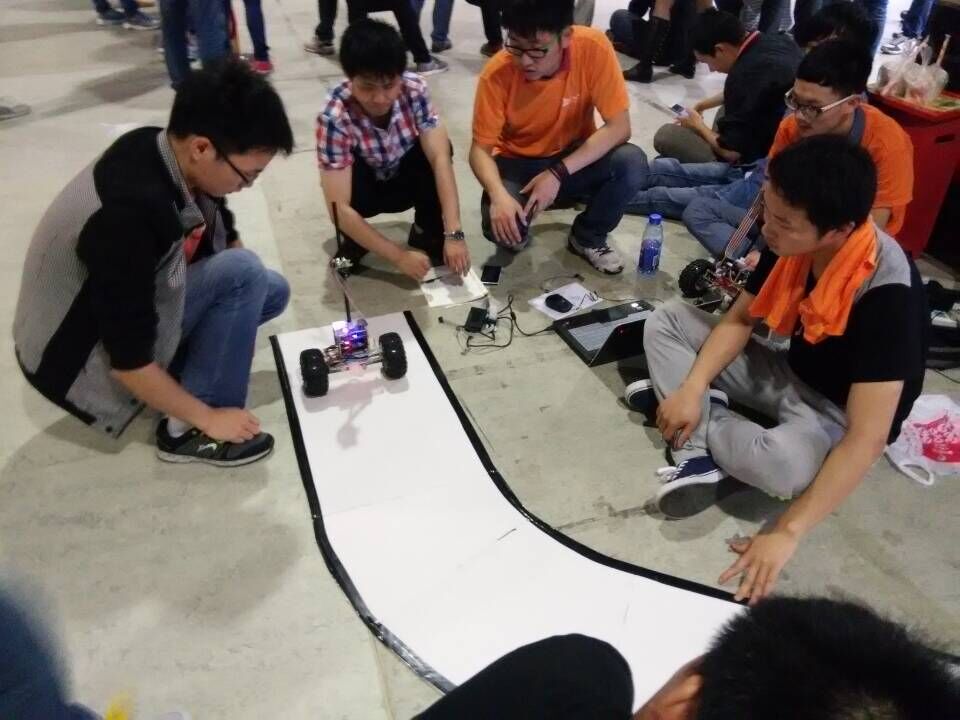 太阳成集团tyc151cc机器人兴趣小组中的13名同学在指导老师彭健、蒋昀赟和陈希瑞的指导下为比赛进行了艰苦的奋战。然而参加这次比赛的主要还是大一的同学,很多人都不是太明白单片机的原理以及c语言的构造和运行方式,想要在这次比赛中获得成绩就需要付出巨大的努力。在调小车的基本直立时,由于同学们基本上没有学过相关知识,不知道从何下手,指导老师蒋昀赟每天下班后陪着同学们研究如何解决问题,即使周末也在指导员工。