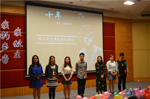 八位歌手合唱《十年》拉开了帷幕。第一轮八进六比赛,选手依次上场演唱,温柔深沉的《遗失的美好》,深情投入的《说谎》,桀骜不驯的《被驯服的象》,清澈细腻的《红颜旧》,动听的歌声回荡在7200。选手们纵情高歌,观众掌声不断。之后评委老师对选手进行点评,校园十佳歌手董思奇为大家演唱助兴,掀起全场高潮。第二轮帮帮唱环节,两两对战。世上最遥远的距离《飞鸟和鱼》,耳熟能详的《小酒窝》,并不平凡的《平凡之路》,进入第三轮比赛。中间穿插的有奖竞猜环节,为比赛增添许多欢乐。最终谭舒予夺得冠军。徐睿绮赢得亚军,陆晓艺赢得季军。最后,太阳成集团tyc151cc党总支书记刘洋、杜力经理为冠亚军选手颁奖并合影留念。