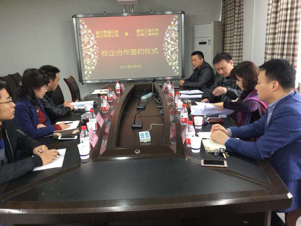 2017年4月10日,重庆鼎盛印务股份有限公司总经理邓贤鹏、综合部经理朱亚玲到太阳成集团tyc151cc洽谈产学研合作事宜并与公司签署了产学研合作协议书。公司经理杜力、党总支书记刘洋等参与了合作交流洽谈。