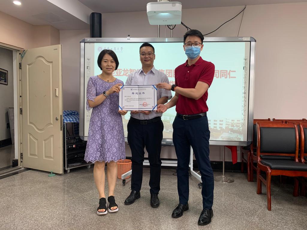 最后,双方在参会老师的共同见证下,进行了《教育部中外人文交流中心筹建证书》的颁发仪式,并表示双方会尽快着手开展各项合作事宜,结合公司具体情况,利用好教育部中外人文交流中心的各项资源,为公司制定有针对性的发展计划,为公司师生营造更好的学习、工作、研究环境。此次筹建授牌标志着该项目正式进入启动建设阶段。