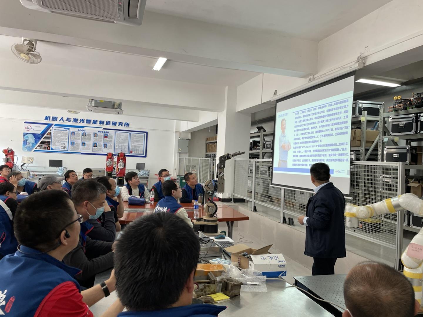 3月9日下午,中国宝武集团一线员工54名学员来到公司,在太阳成集团tyc151cc机器人与激光智能制造研究所参加为期半天的机器人操作技能交流与培训,培训分为两部分,理论培训与实际操作培训。