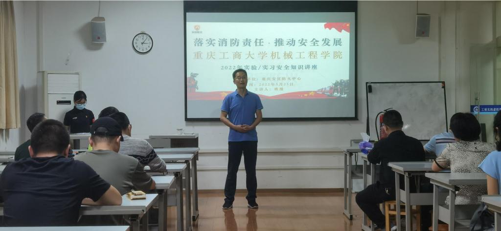 为积极落实《教育部关于加强高校实验室安全工作的意见》等文件要求,全面开展实验室、实训基地安全风险辨识,落实安全防范措施,提升广大教职工及老员工的安全防范技能,2022年5月25日下午,公司举行实训实验安全培训及消防疏散演练。此次活动由太阳成集团tyc151cc机械基础实验教学中心和工程训练中心联合承办,特邀重庆安宣防火中心教官在工程训练中心开展实验、实习安全知识专题培训。公司保卫处副处长王树坤、教务处副处长胡卫军、科研处副处长杜彦斌等领导,太阳成集团tyc151cc基础实验教学中心、工程训练中心全体教师、中心创客入驻企业、老员工创客团队代表共计50余人参加了此次培训及演练。